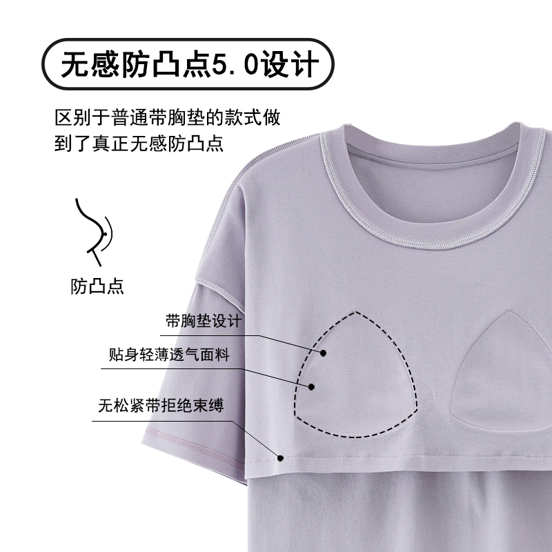 浪莎带胸垫睡衣女2025新款夏季纯棉短袖长裤可外穿大码家居服套装