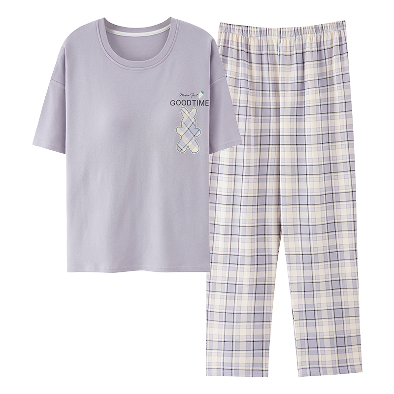 浪莎纯棉带胸垫短袖长裤睡衣套装