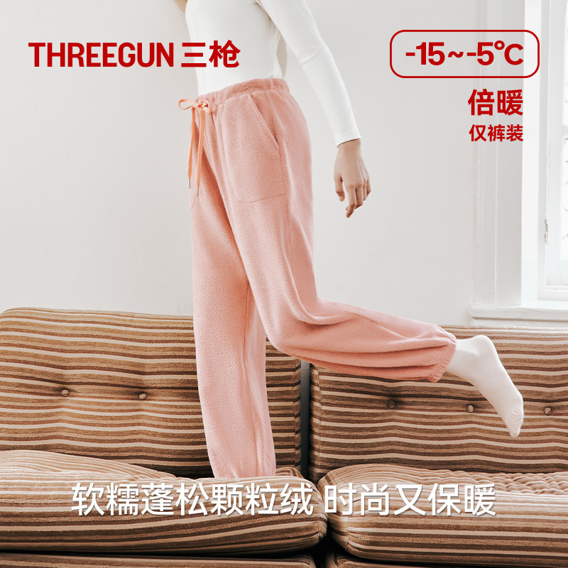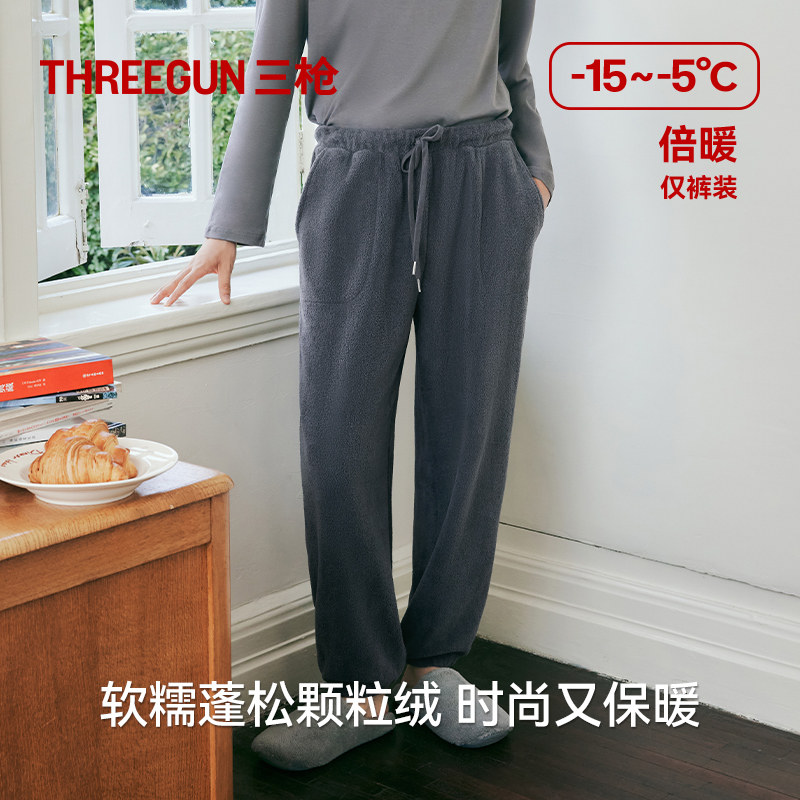 三枪防静电家居服情侣睡裤秋冬加绒加厚保暖男长裤家居裤