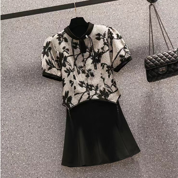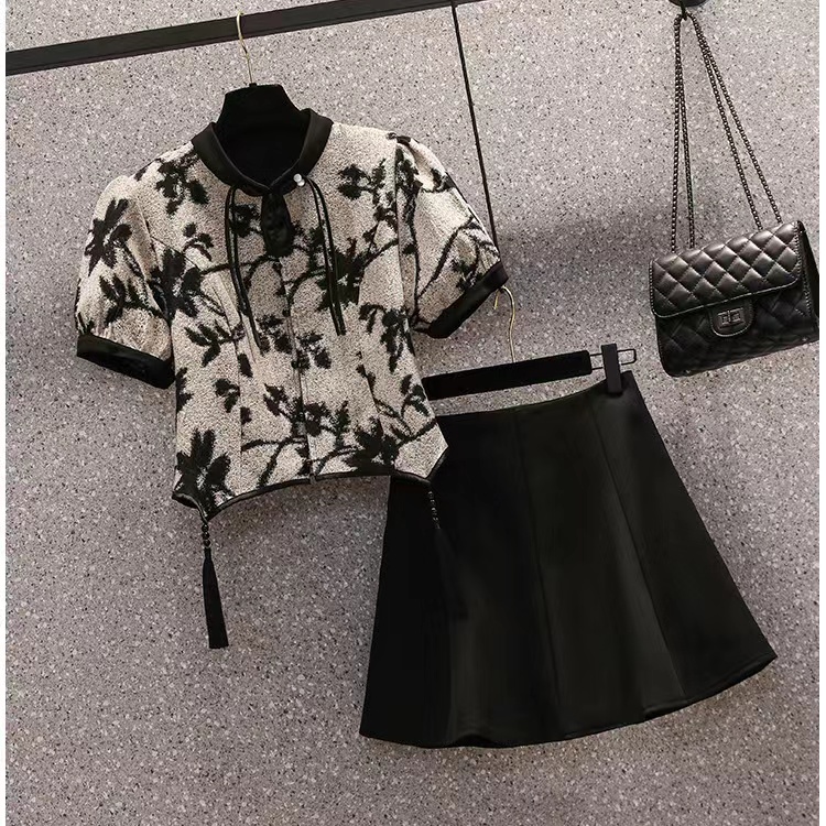 夏季新款大码中式改良盘扣流苏上衣高腰半身裙潮中国风盘扣套装女