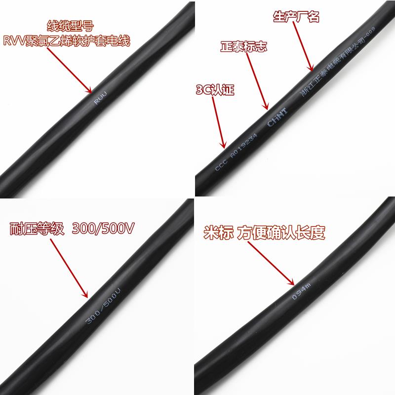 正泰电线 线电缆RVV2*1.5/2.5/4/6平方软护套线 线全铜芯国标两芯