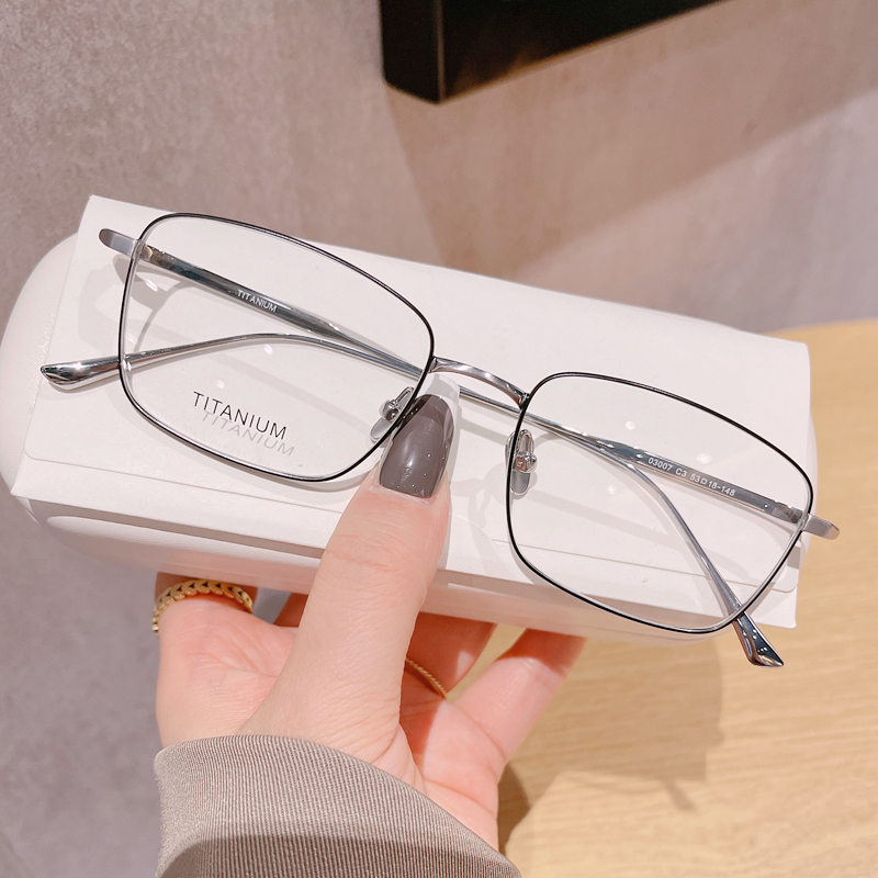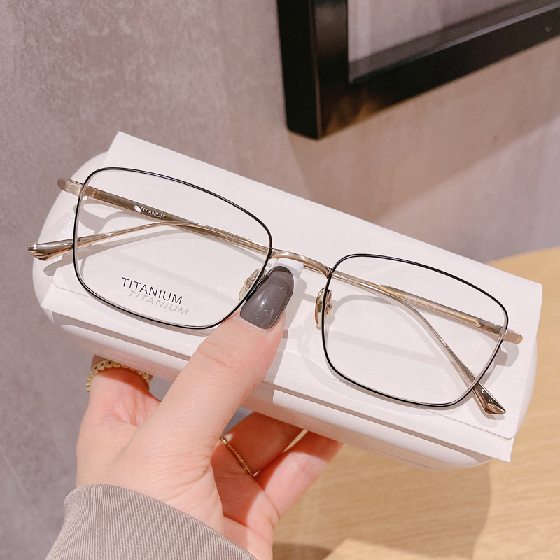 新款高端一体纯钛眼镜框大脸显瘦近视可配度数男方形眼镜商务复古