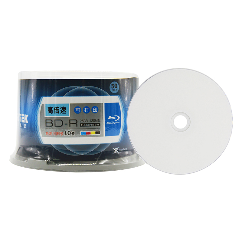 正品Ritek铼德BD-R可打印蓝光刻录光盘25GB蓝光10X空白盘BD蓝光25G刻录碟片12X黄金盘BD25GB光盘50片桶装