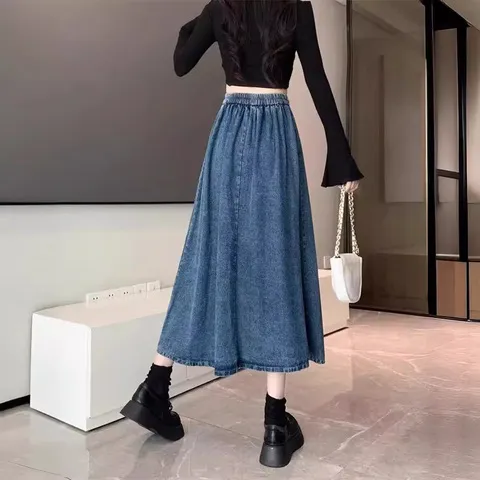 女绑带中长裙半身裙a字裙子小个子显瘦新款高腰春季复古牛仔气质
