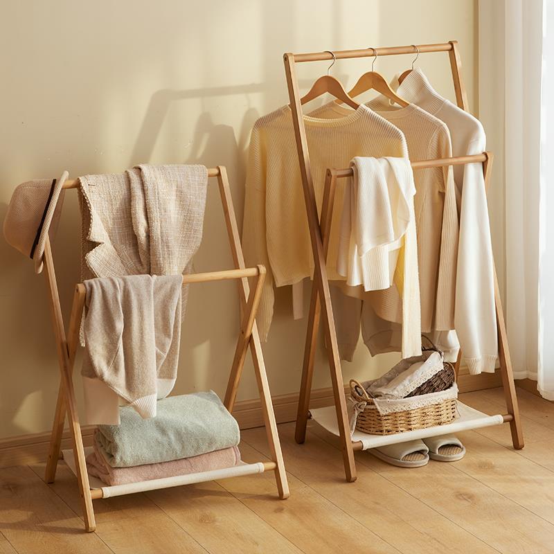 床头衣帽架晚上睡觉临时搭衣裤收纳落地折叠楠竹卧室北欧挂衣架
