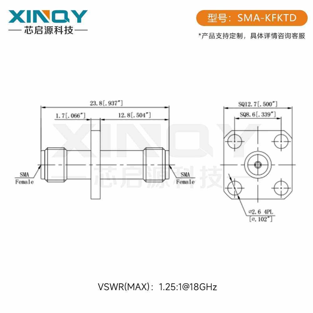 XINQY SMA 18G法兰盘转接器 SMA双母头射频同轴转接头 SMA转接器