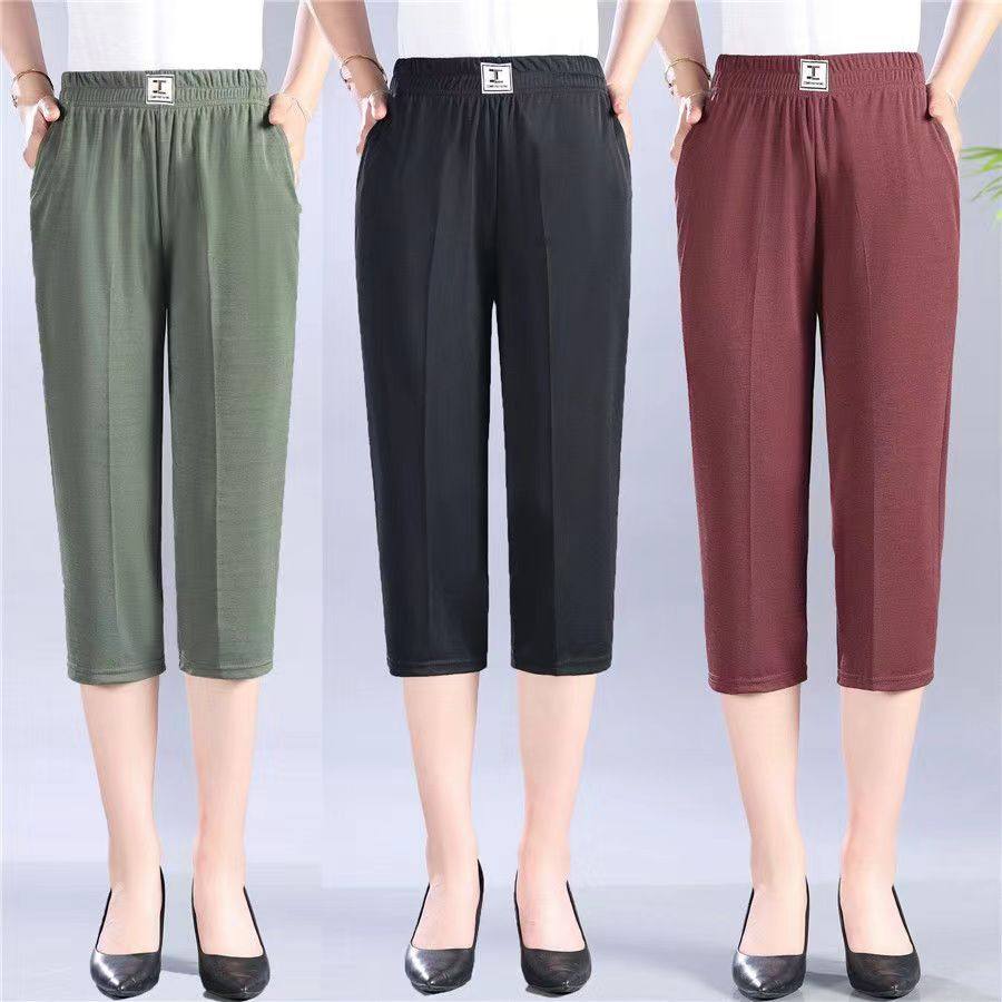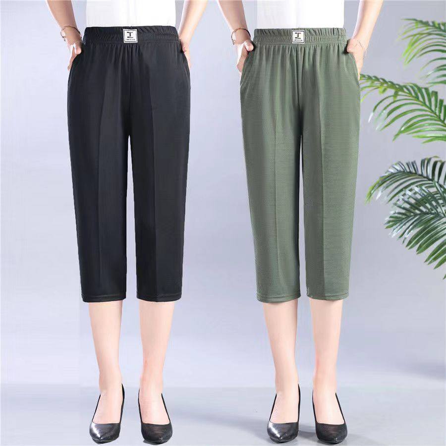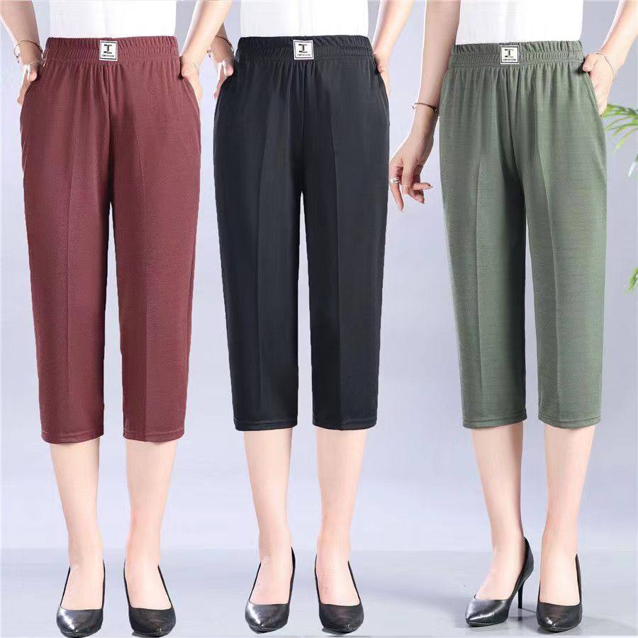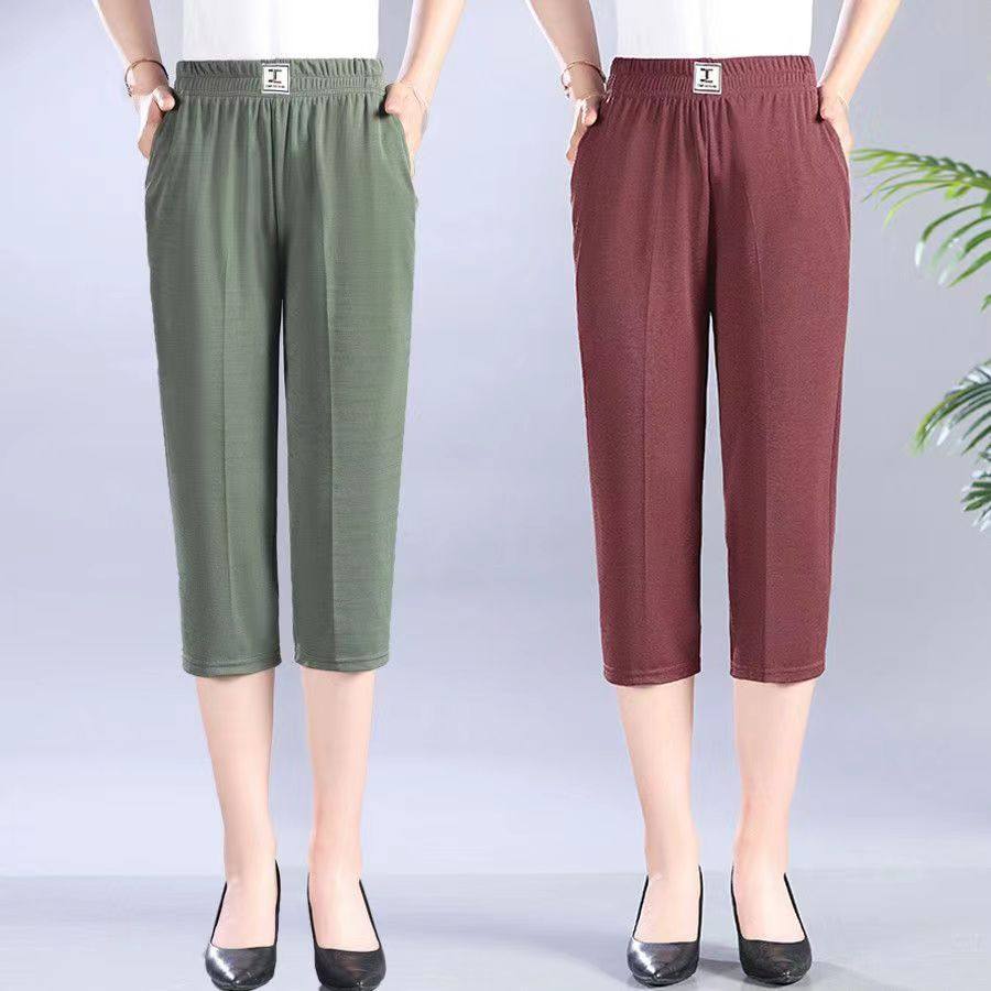 2025春夏季新款女士薄裤子中老年女裤高档七分裤宽松休闲直筒裤子
