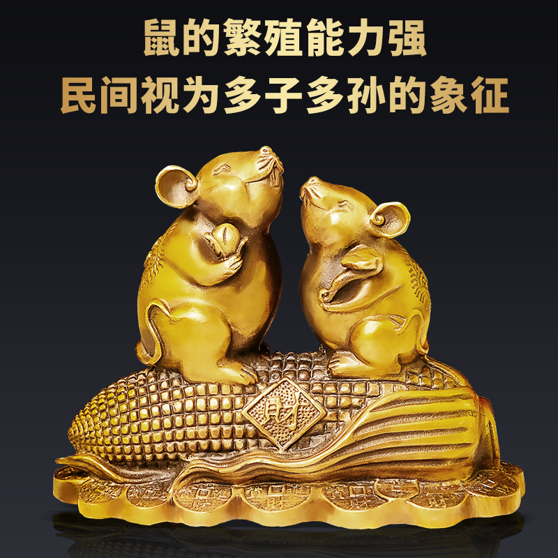 老鼠摆件黄铜十二生肖鼠家居装饰属相鼠金鼠工艺品客厅办公室摆设