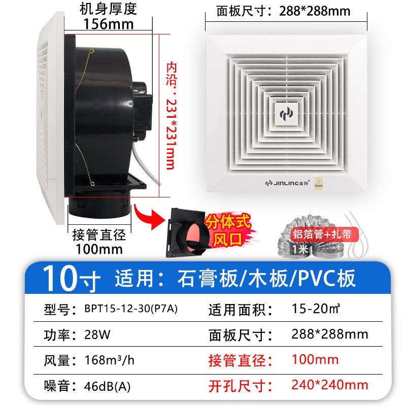 江门金羚30x30集成吊顶排气扇60x气扇60铝扣板天花排风吸顶抽风换
