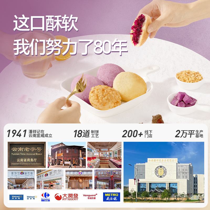 礼盒潘祥记玫瑰鲜花饼零食礼包零食中式糕点玫瑰花饼礼盒云南特产