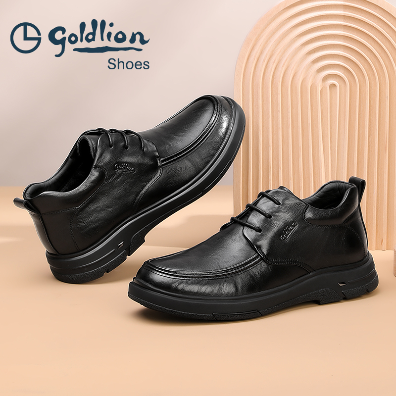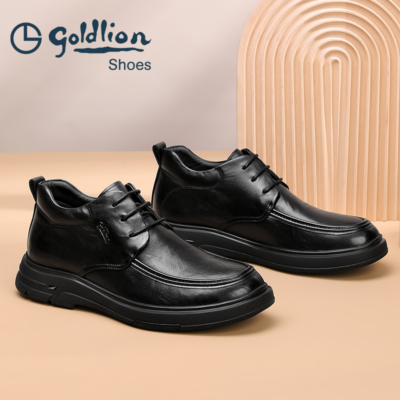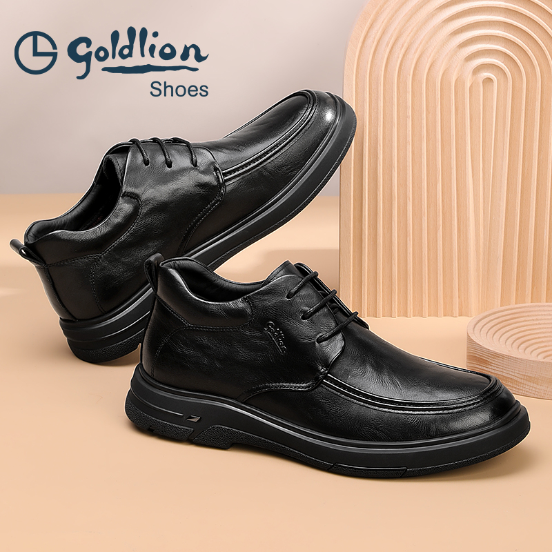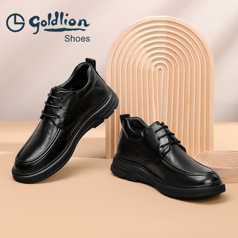 金利来男鞋冬季新款时尚商务棉靴加绒牛皮耐磨御寒保暖系带皮鞋男