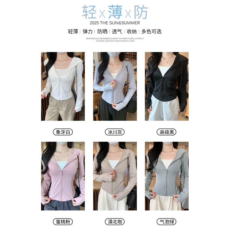 粉色冰丝防晒衣女夏薄款2025新款户外防紫外线紧身防晒服修身外套