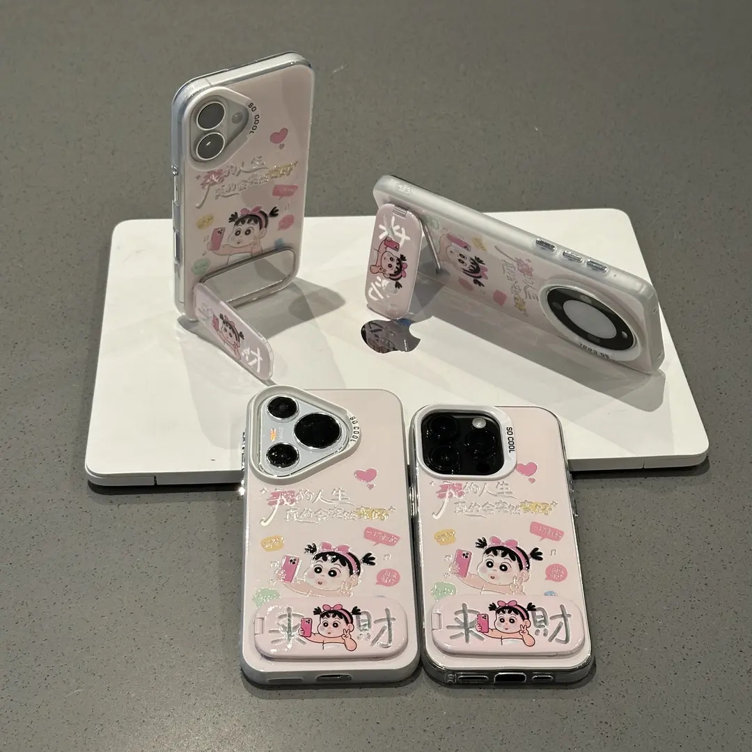 适用苹果16E手机壳17air蜡笔小新iPhone15promax外壳14plus支架13mini女12全包11防摔8保护套7专用xsmax新款6