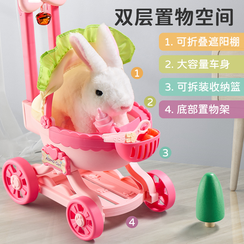 儿童仿真动物宠物手推车女孩毛绒玩具电动小猫咪兔子狗狗会叫走路