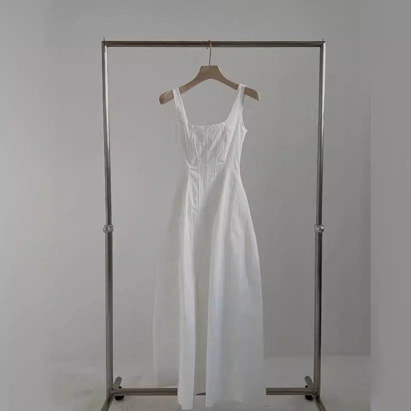 2025夏季新款韩版收腰显瘦气质简约无袖中长裙时尚吊带连衣裙