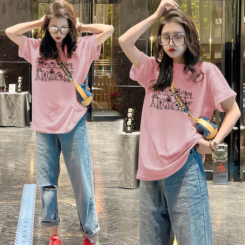 短袖t恤女2025新款纯棉显瘦大码女装胖mm宽松慵懒风夏季黄色上衣