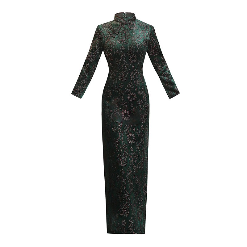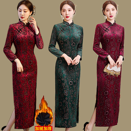 老上海旗袍秋冬新款加绒加厚高端雪貂绒改良版妈妈装复古连衣裙女