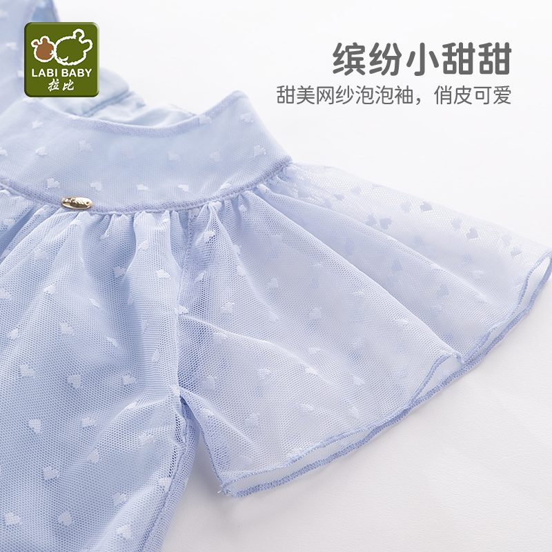 拉比女童花边连衣裙2025夏新款宝宝网纱公主裙时尚洋气蓬蓬A字裙