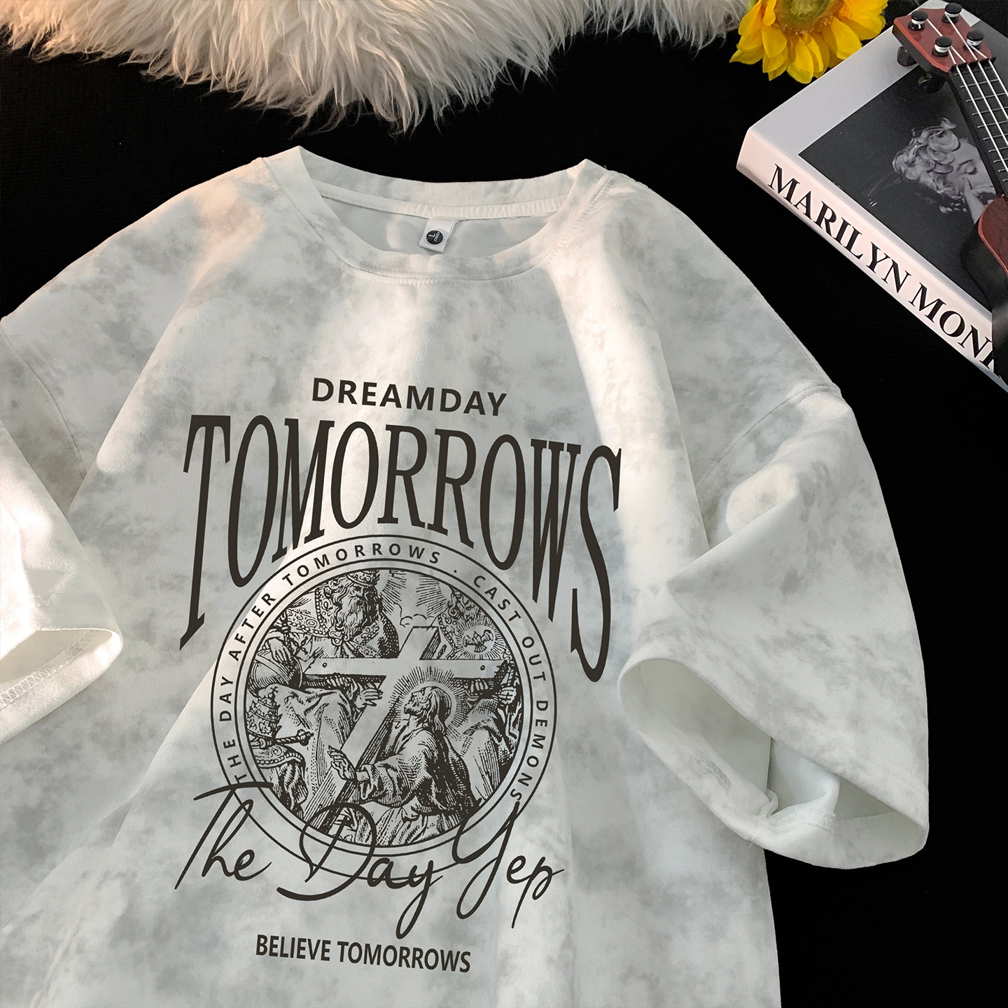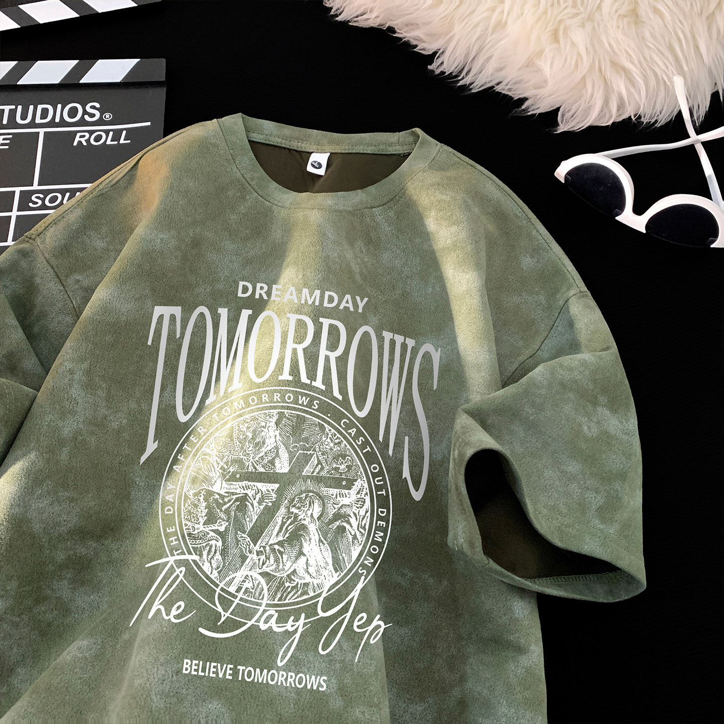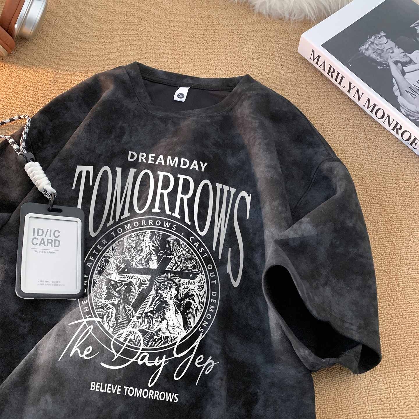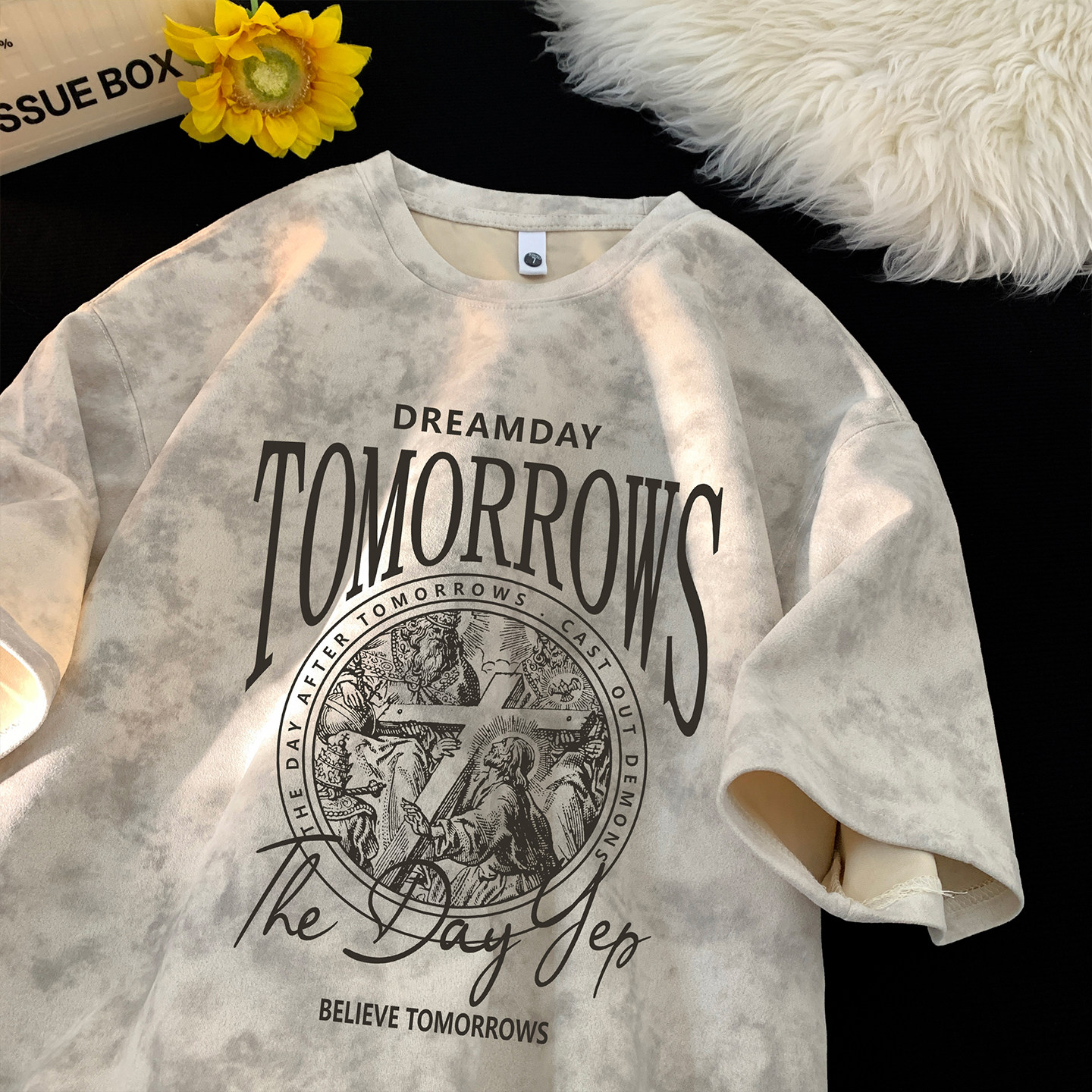 男t恤短袖美式复古扎染青少年宽松半袖高街大码圆领潮流上衣体恤