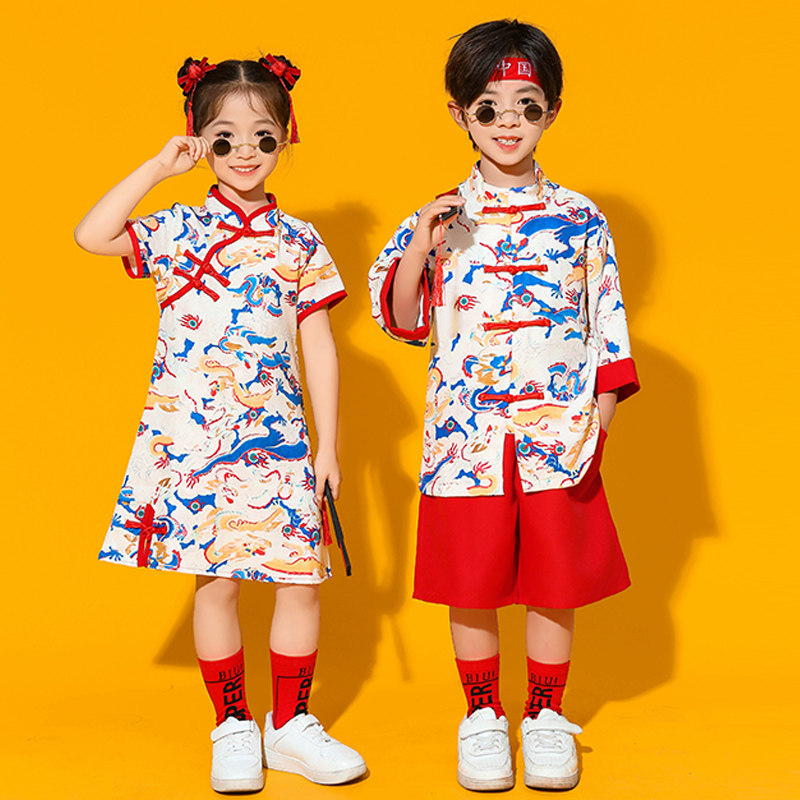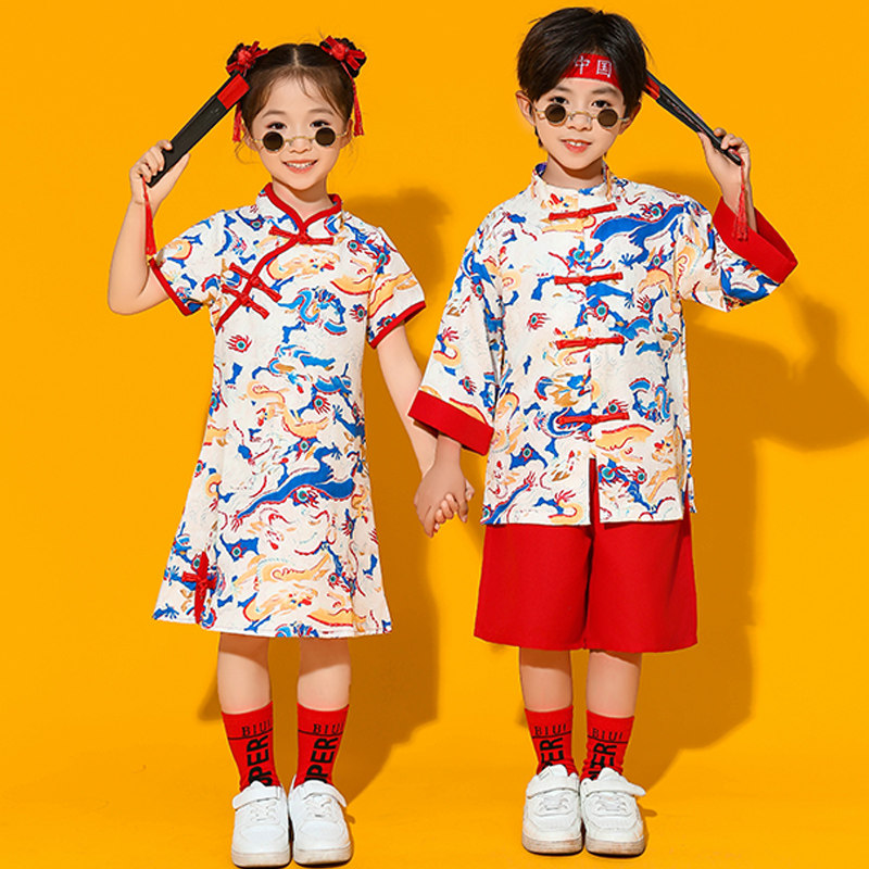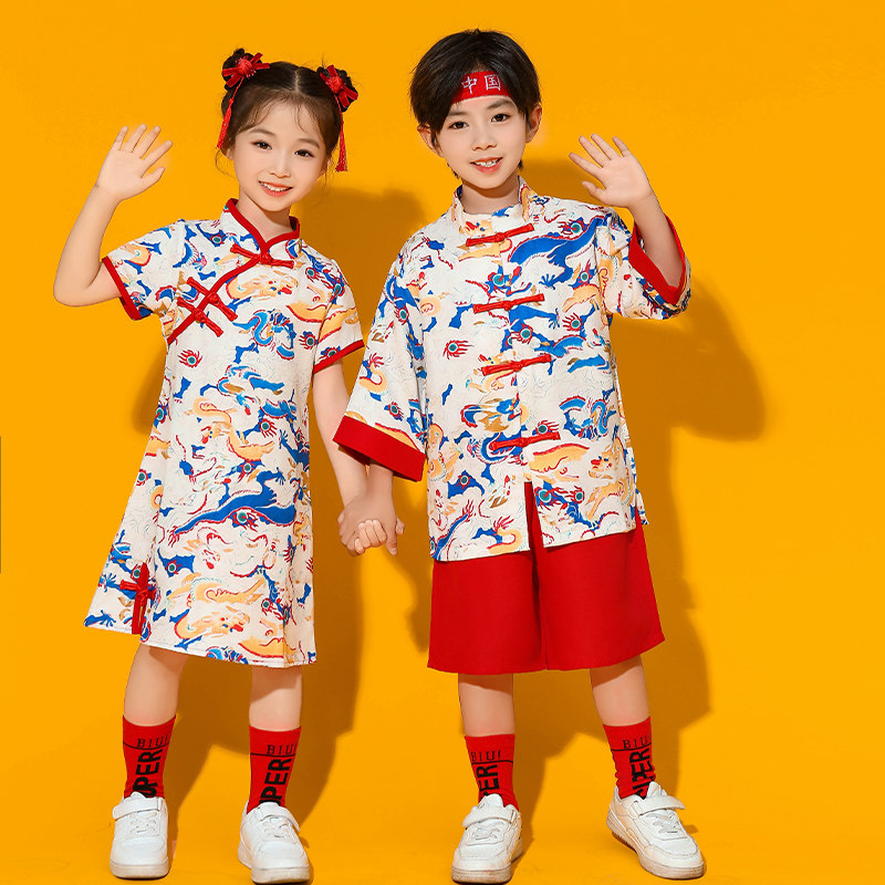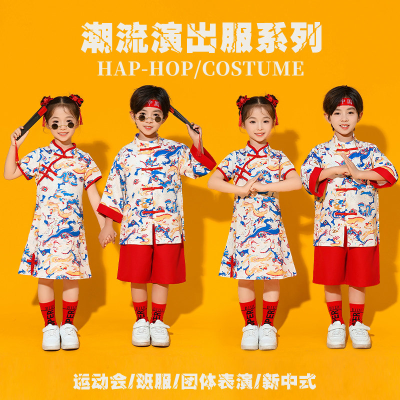 六一儿童表演服装中国风男童汉服唐装女童旗袍合唱服啦啦队演出服