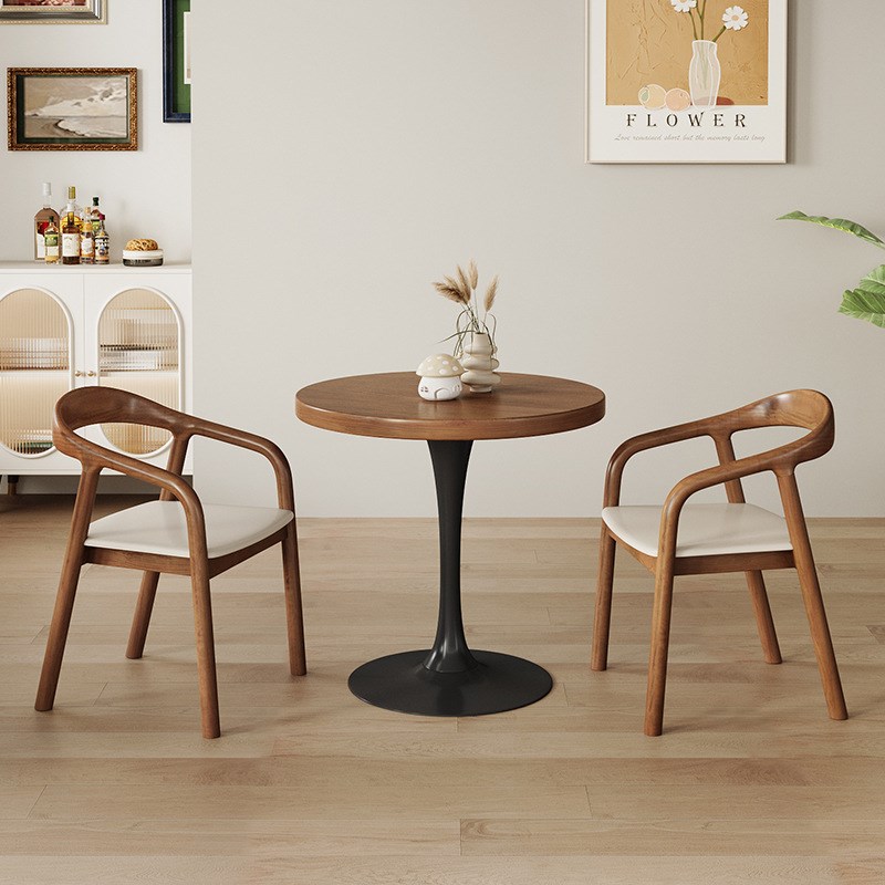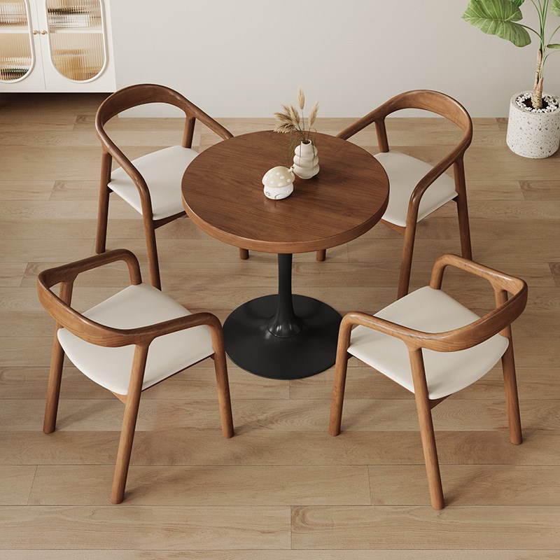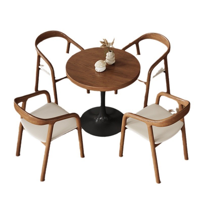 现代简约深胡桃色实木圆形餐桌办公室接待洽谈桌椅组合咖啡店圆桌