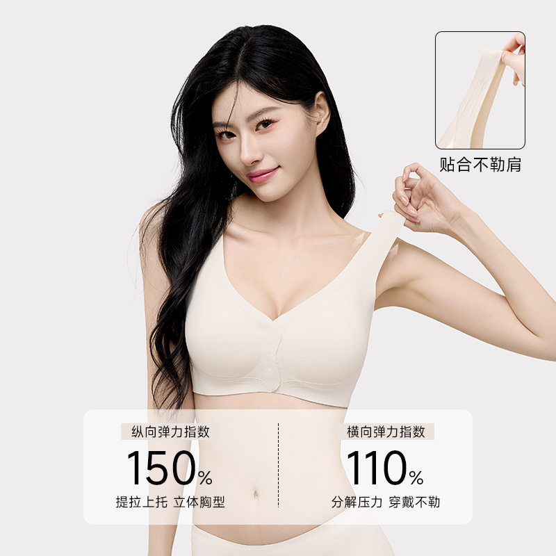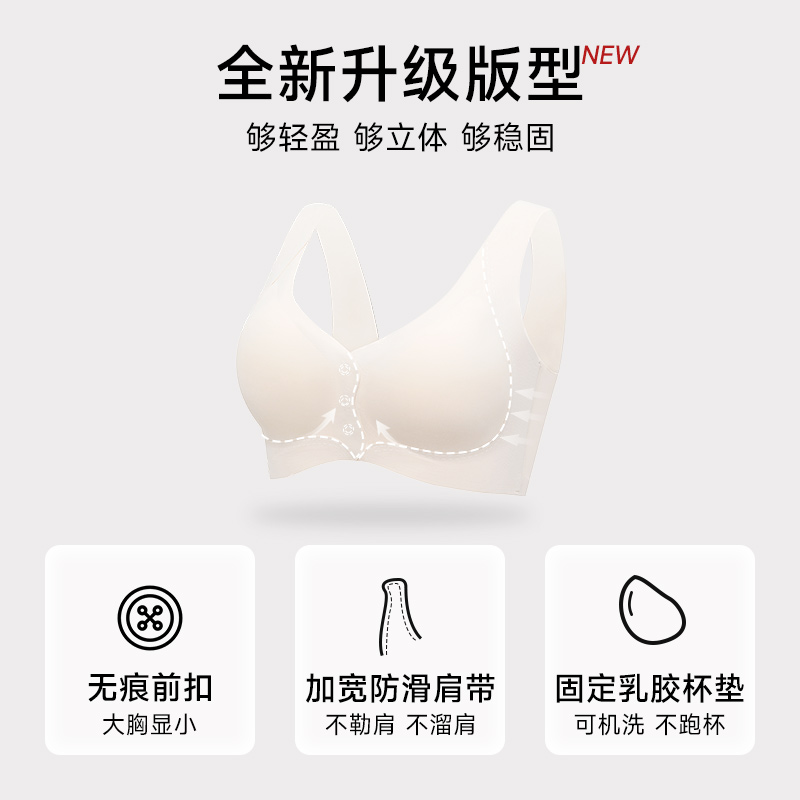 猫人前扣大码聚拢内衣女提拉一体式背心收副乳防下垂无痕薄款文胸