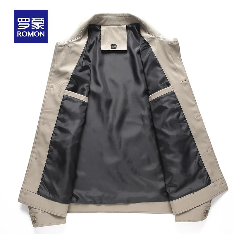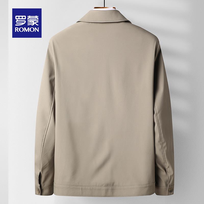 罗蒙新款翻领夹克男外套春秋季商务男装爸爸款风衣中老年春装上衣
