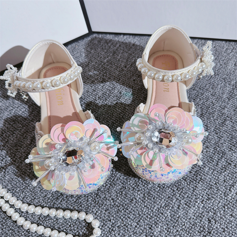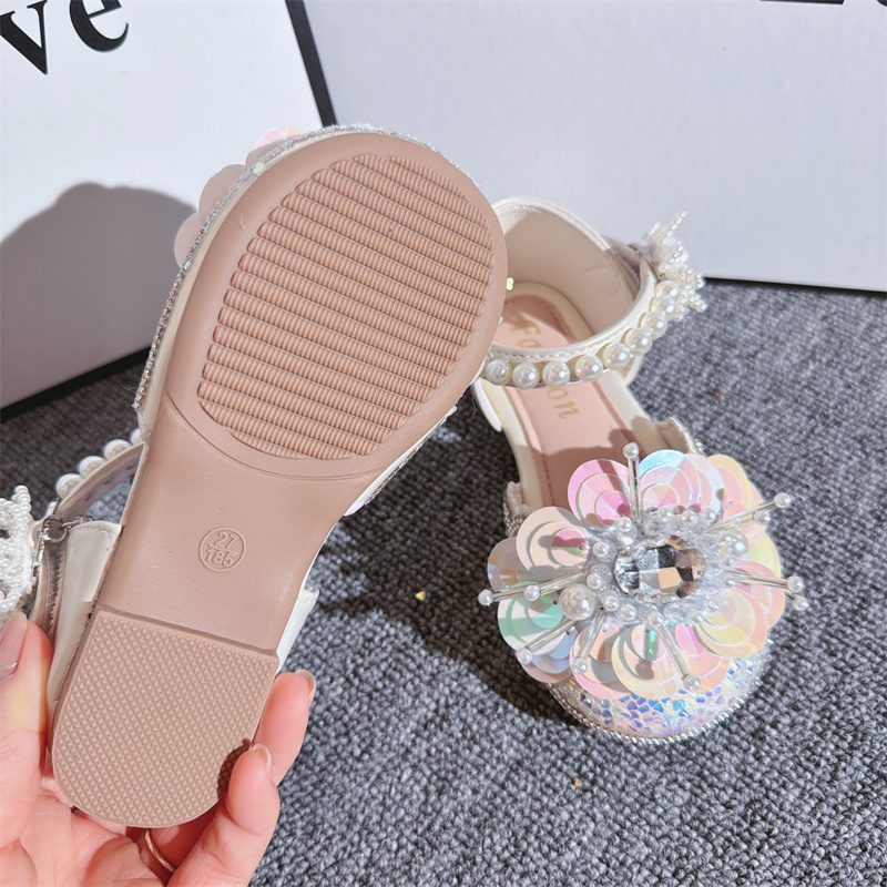 女童包头凉鞋春夏季2025新款女孩水晶鞋蝴蝶珍珠公主鞋演出舞蹈鞋