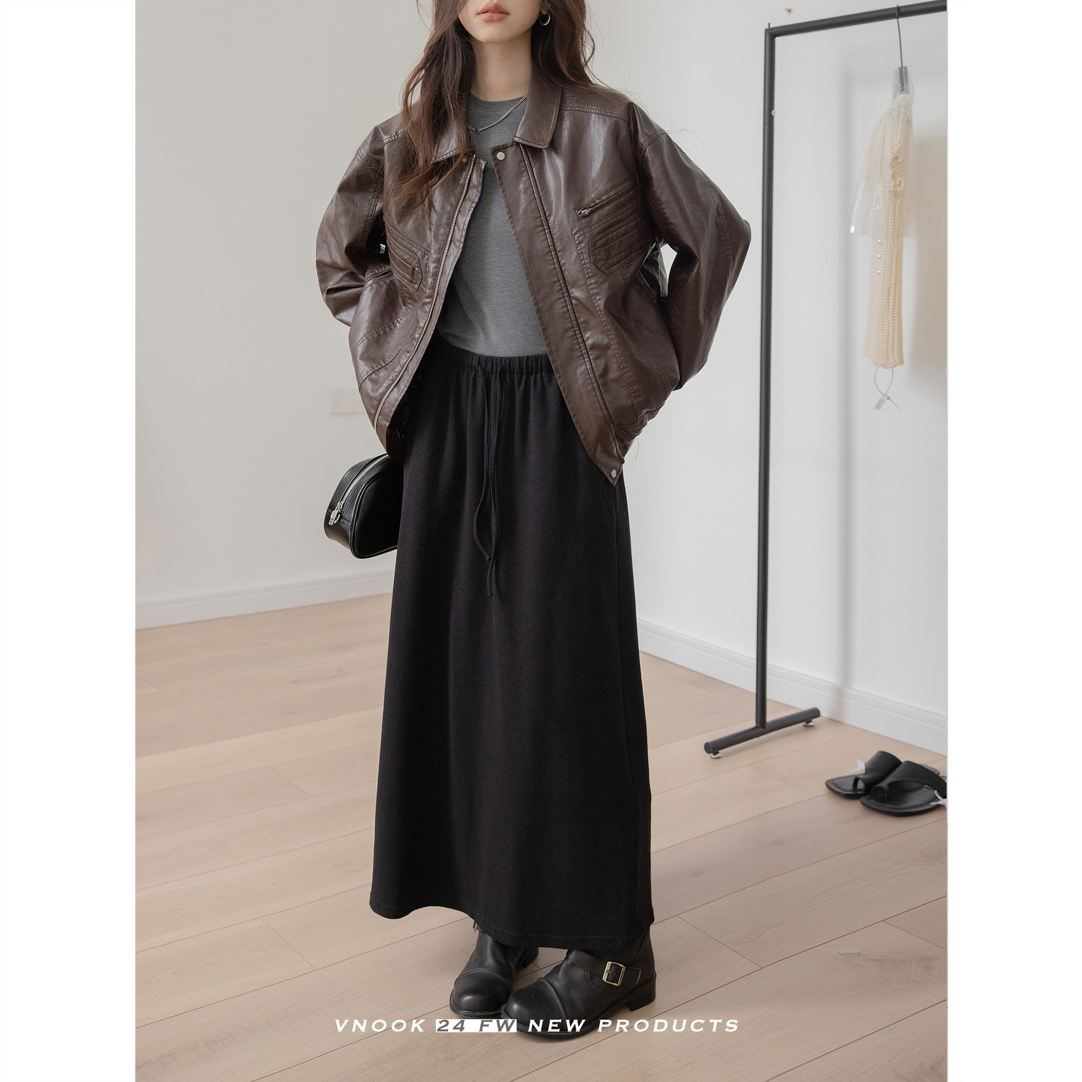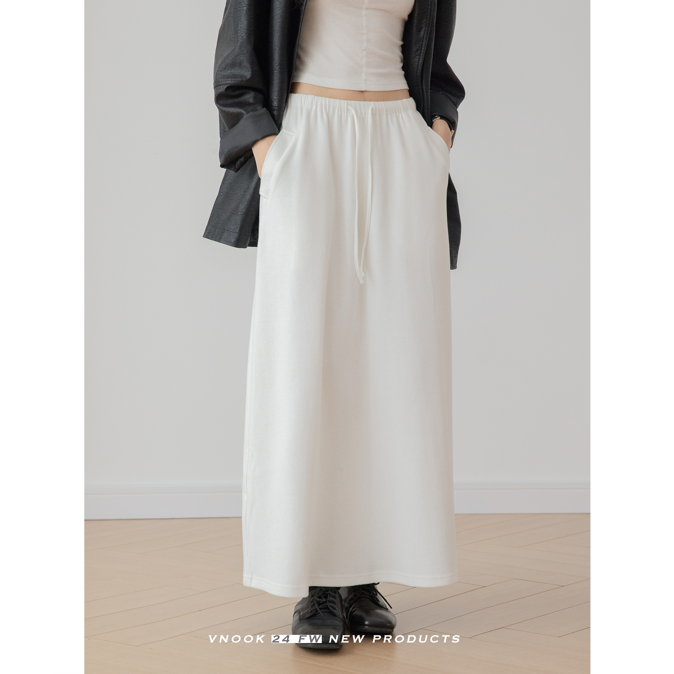VNOOK 针织棉半身裙女春秋2024新款长款气质松紧高腰伞裙a字裙子