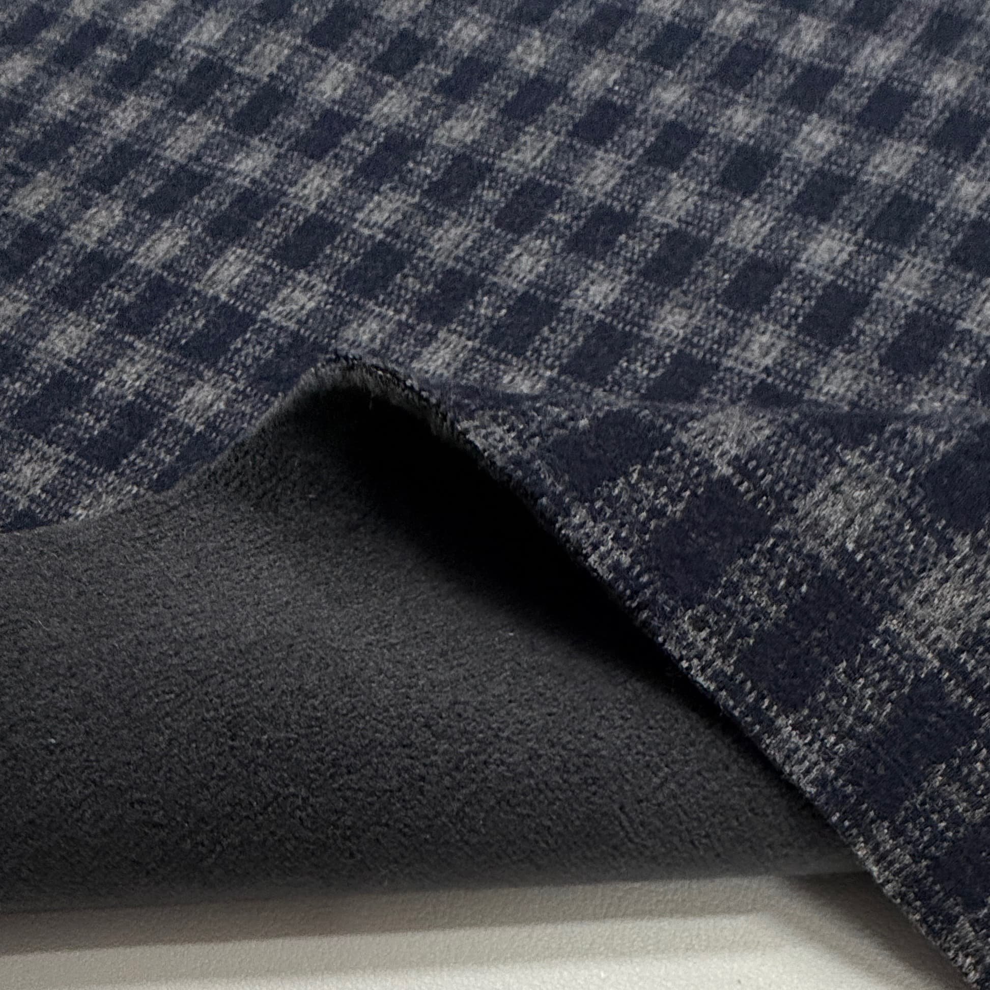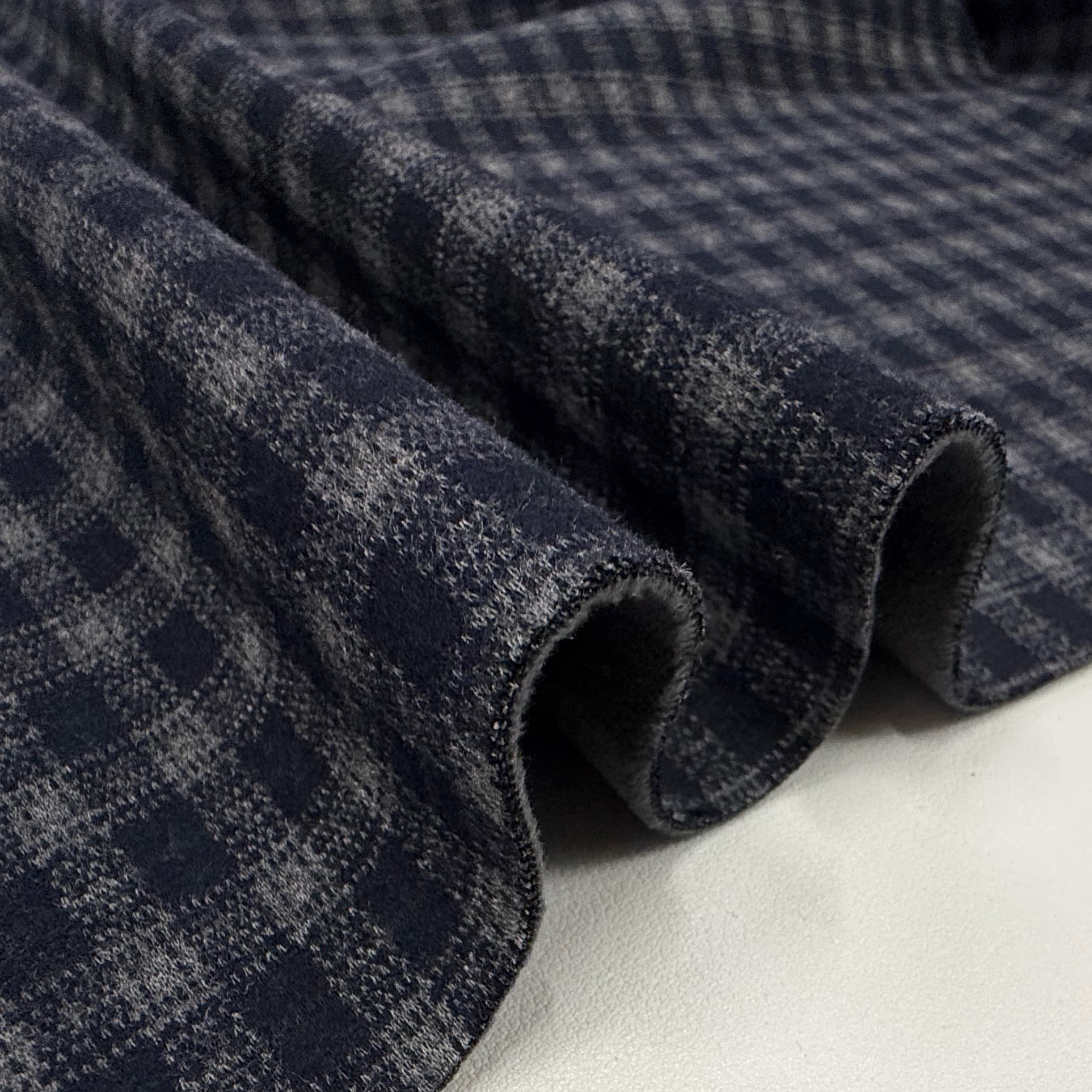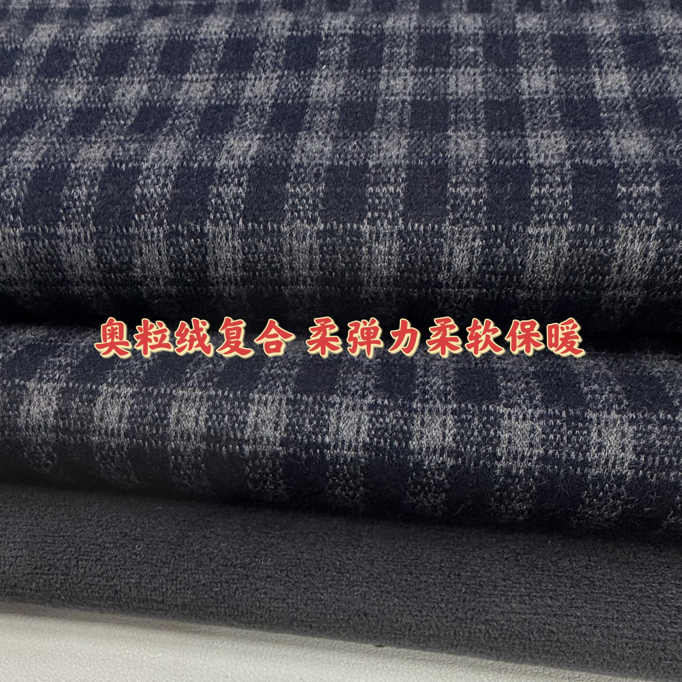 加绒保暖锦棉磨毛格子布料藏青灰格冬季马甲阔腿裤上衣服装布料
