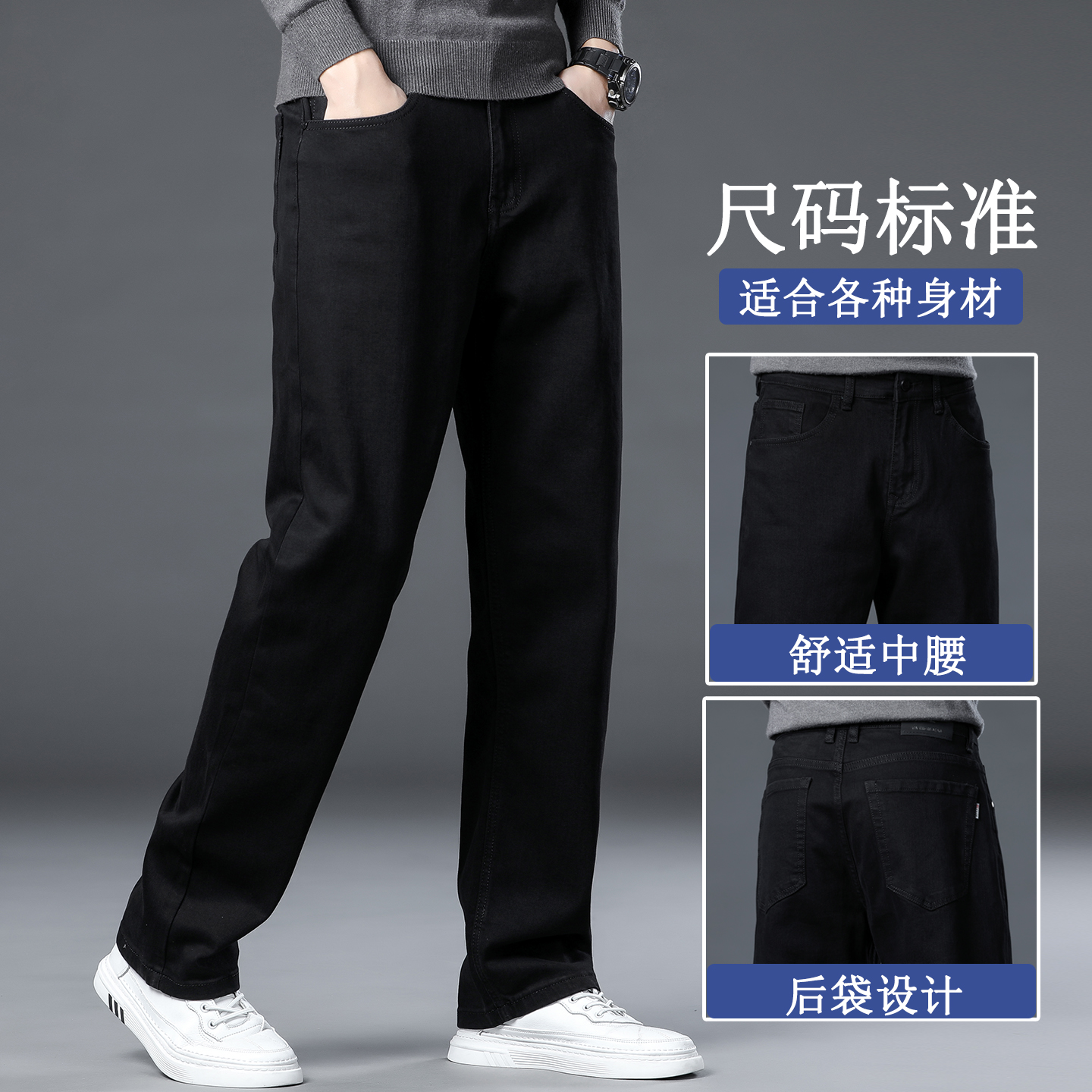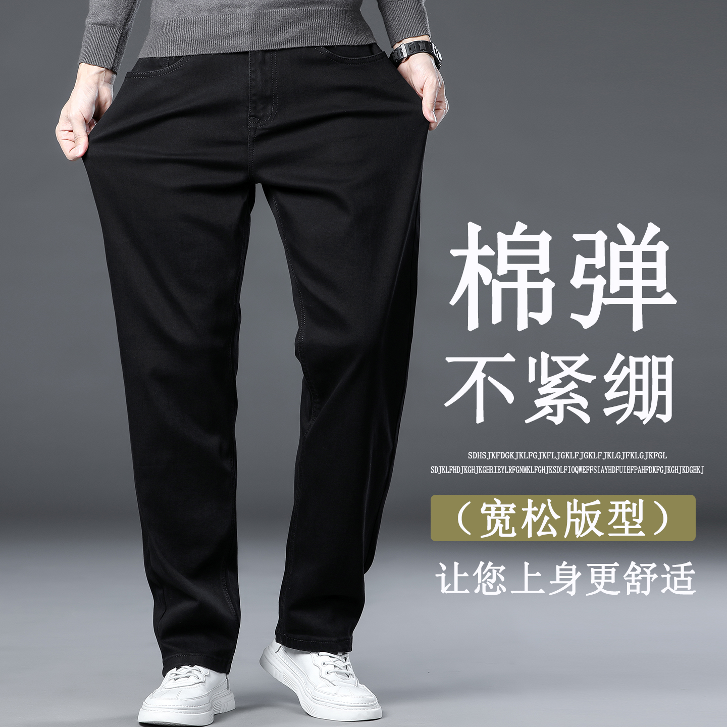 黑色牛仔裤男2025秋季新款宽松直筒弹力休闲长裤中年男士爸爸裤子