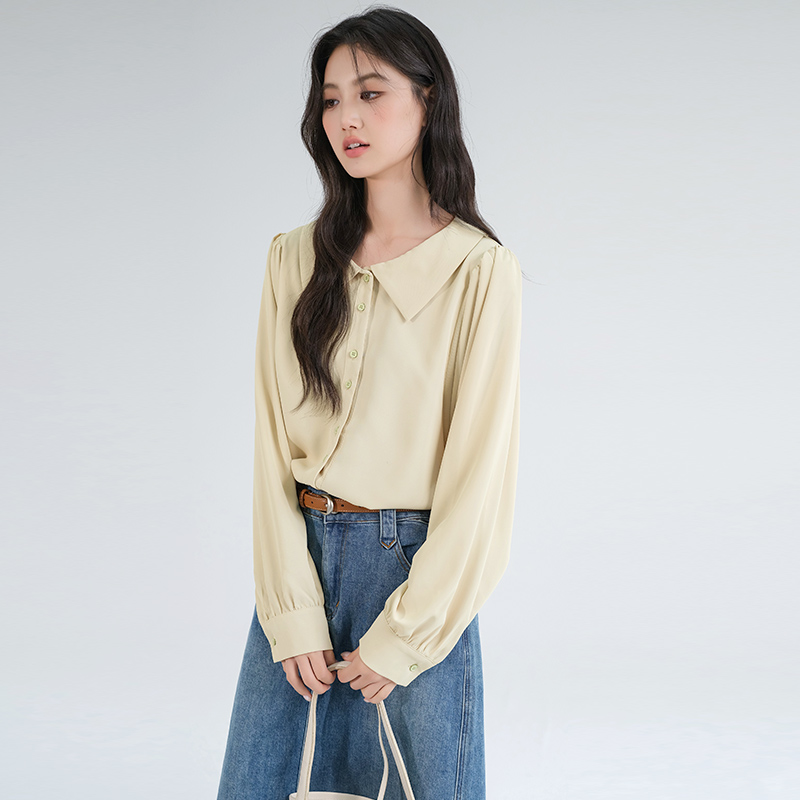 【灯笼袖雪纺衫】蓝若水大码女装胖mm秋季新品气质减龄娃娃领衬衫