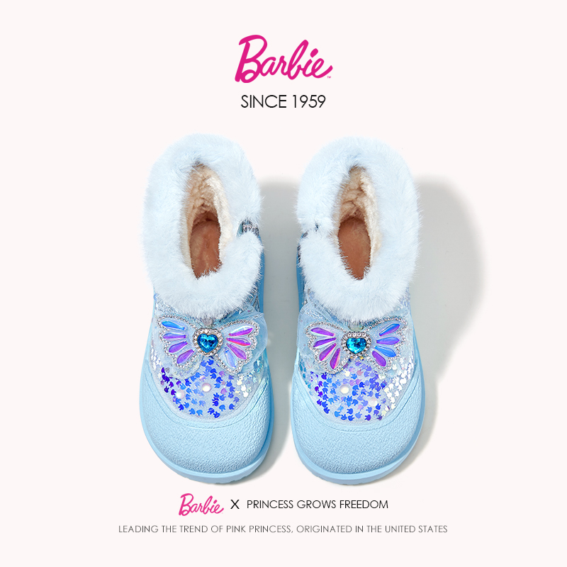 芭比童鞋女童雪地靴2025新款冬季加绒保暖棉鞋艾莎公主靴儿童靴子
