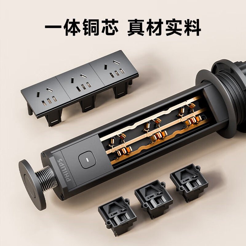 飞利浦升降插座厨房桌洞台面橱柜嵌入岛台桌面带usb隐形排插线板