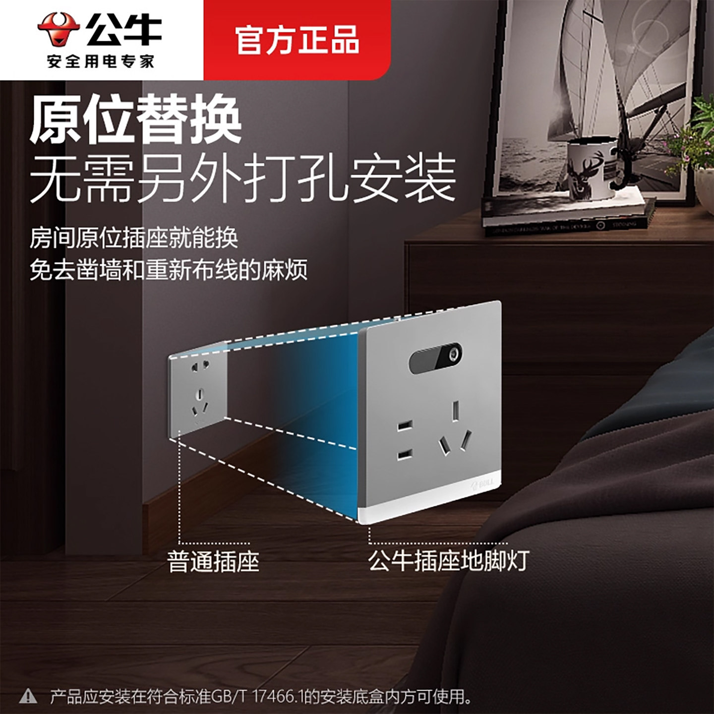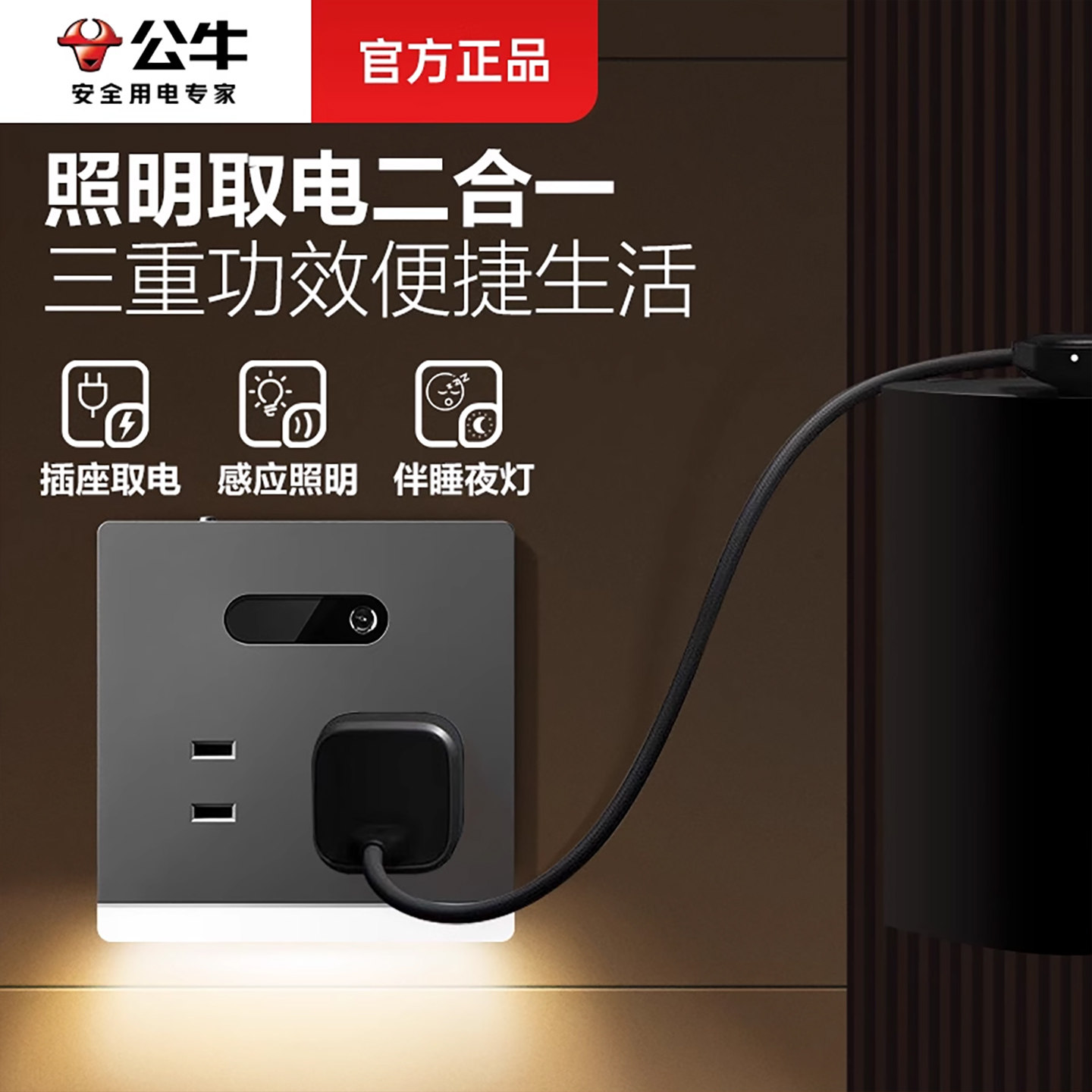 公牛人体感应地脚灯带5孔插座