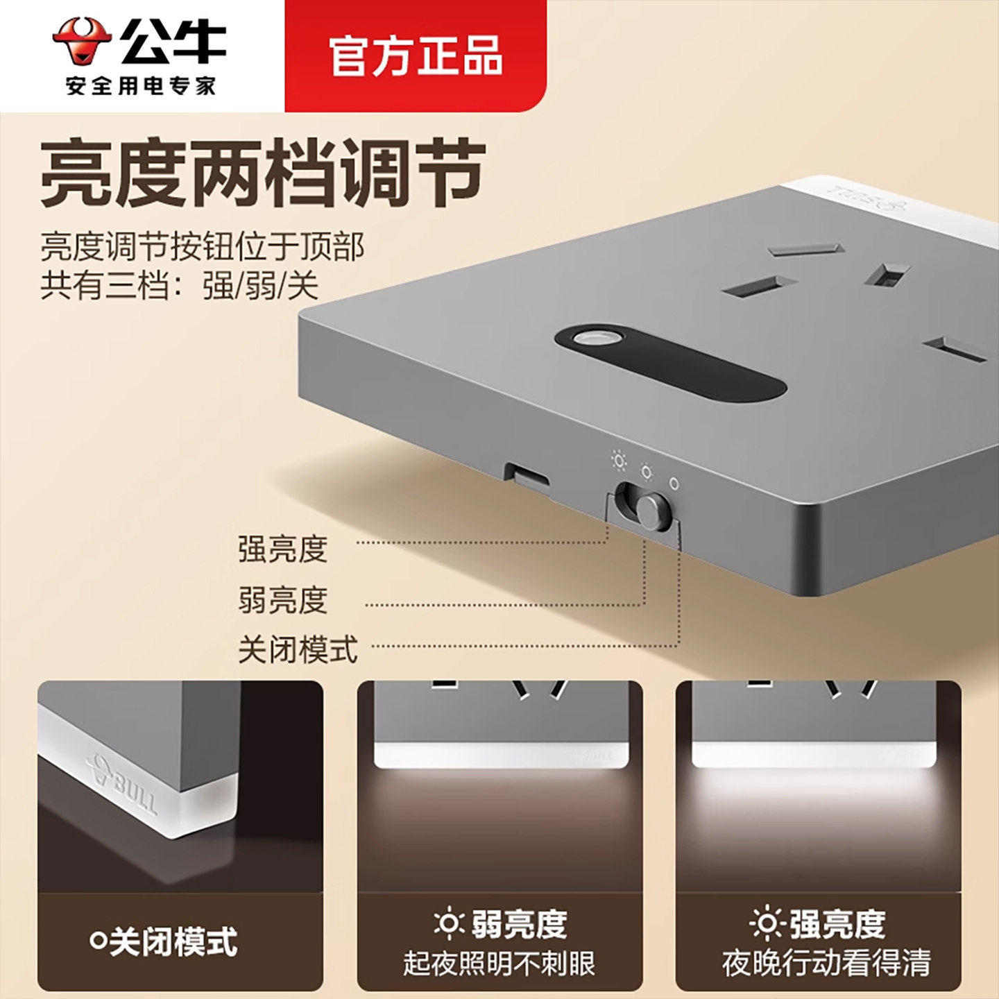 公牛人体感应地脚灯86型带5孔插座光控体感走廊厕所床头灯夜灯
