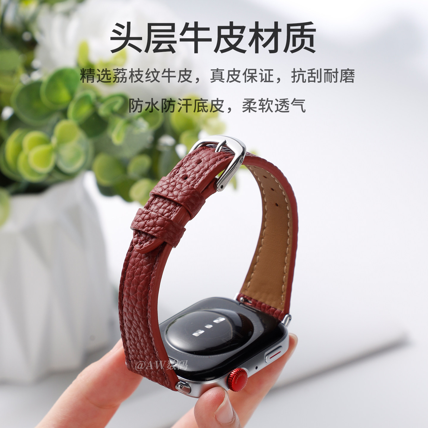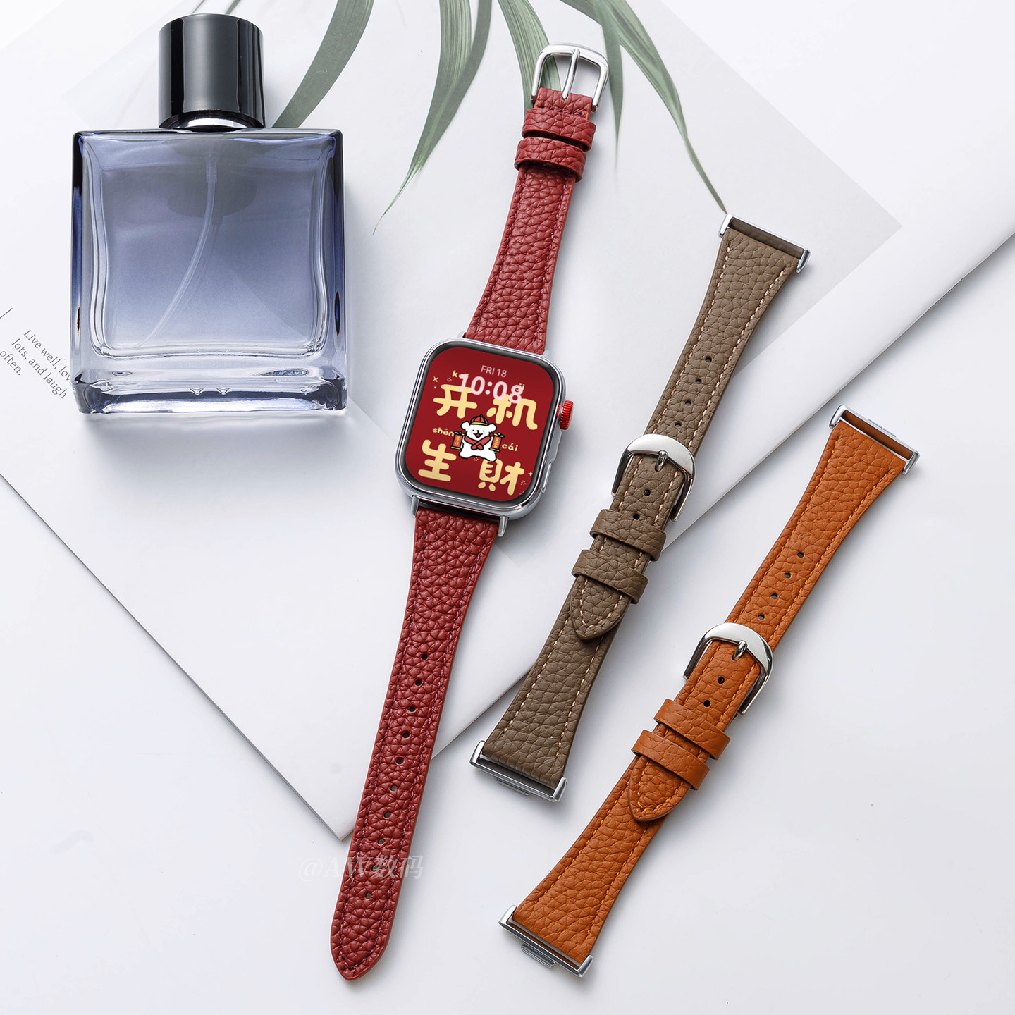 适用华为fit4表带watchfit3手表新款荔枝纹真皮fit4pro女款小香风腕带智能fit2高级酒红色女士秋冬透气替换带