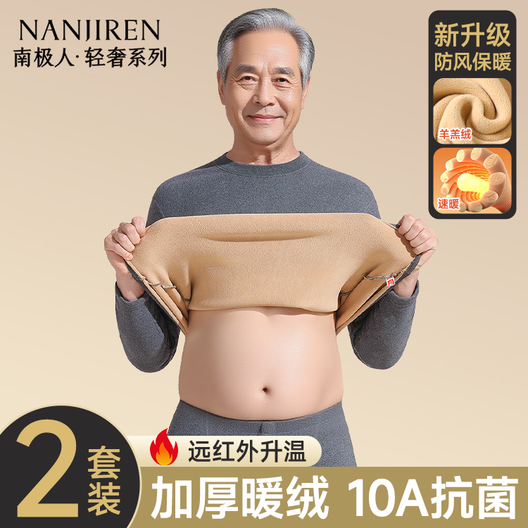 南极人中老年人保暖内衣男士加绒加厚爸爸秋衣秋裤套装宽松加大码