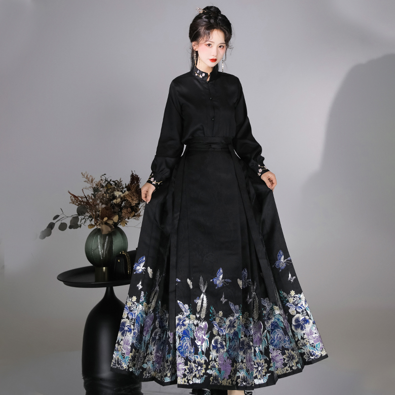 慕夏【步步生花】汉服女明制汉元素国风日常立领衬衫螺钿马面裙夏