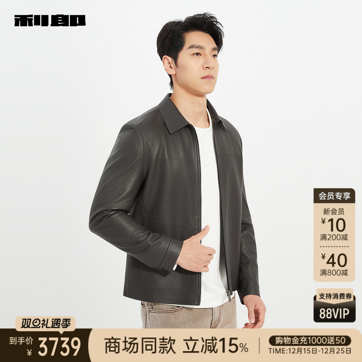 利郎官方商场同款秋季真皮皮衣