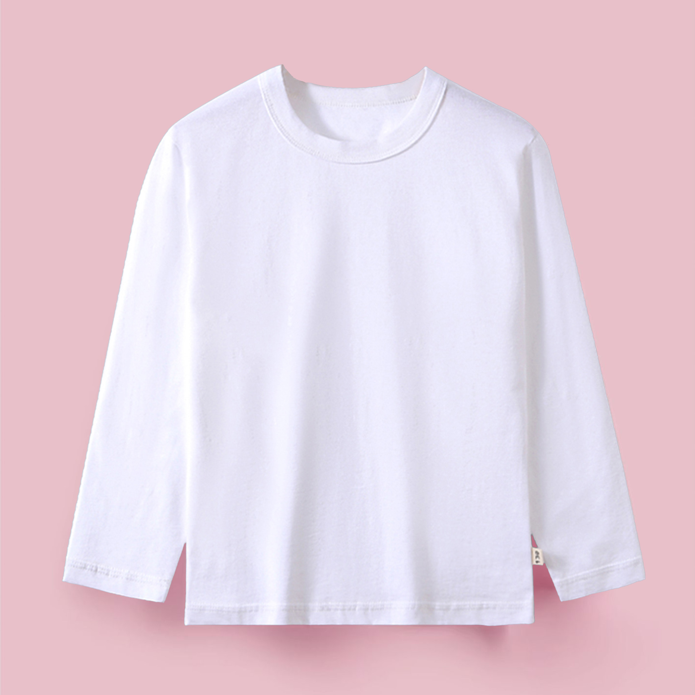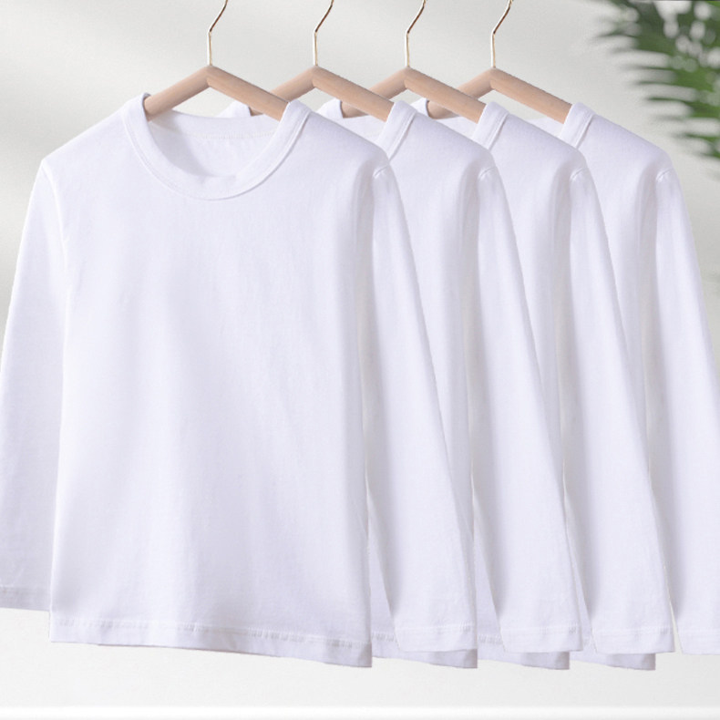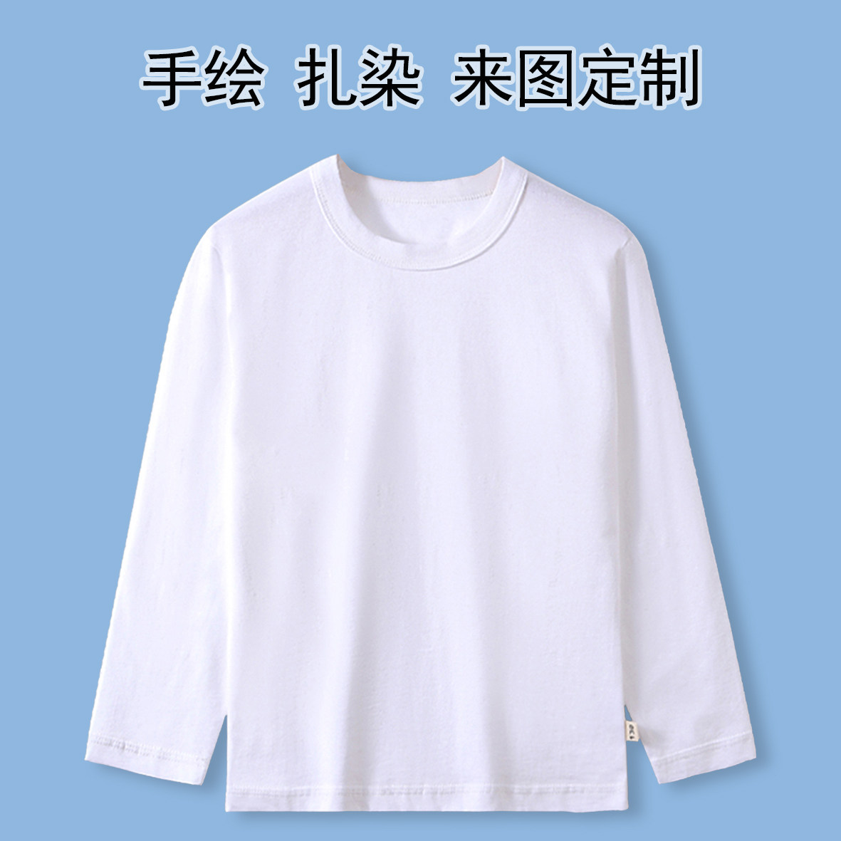 儿童纯棉白色长袖T恤衫男女纯白打底衫学手绘扎染T秋冬内搭白秋衣