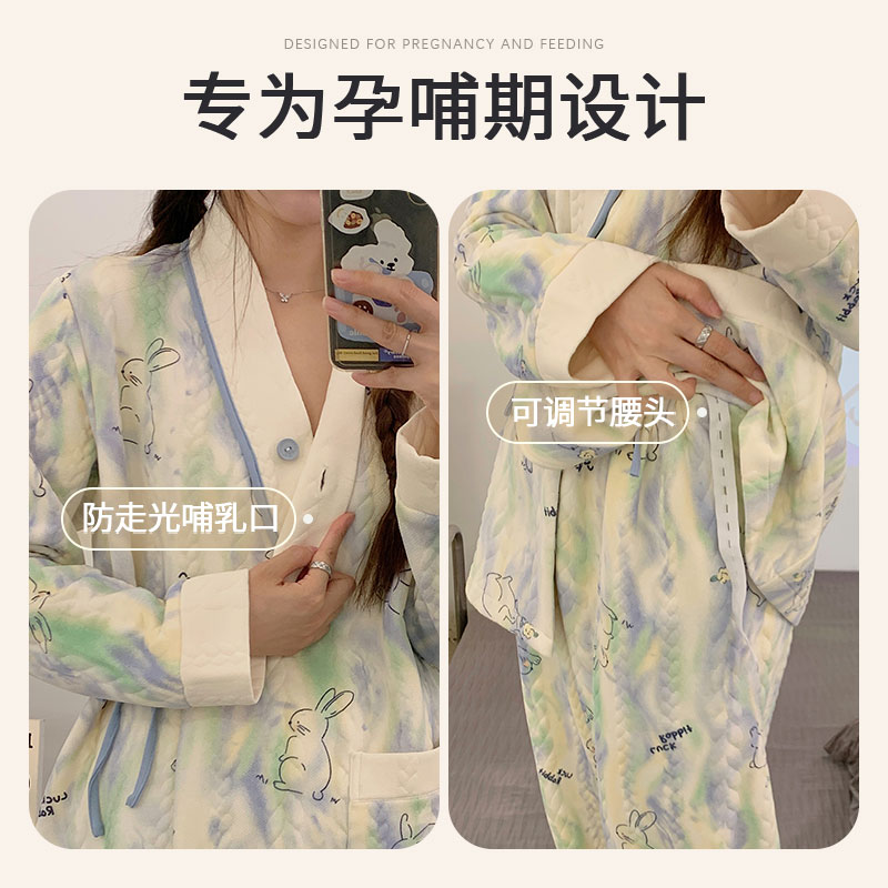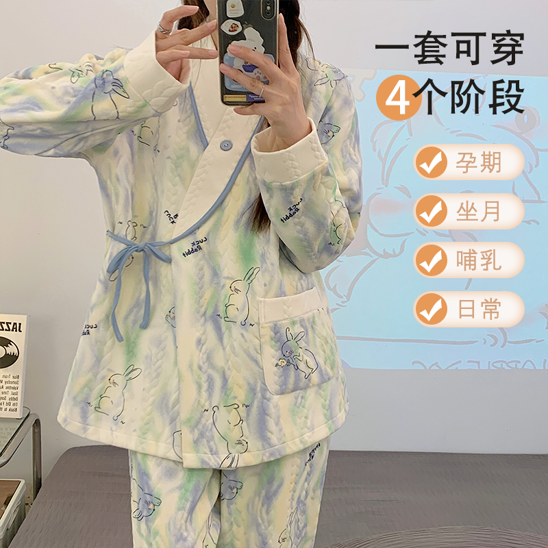 安娜妈咪空气棉月子服孕妇冬加厚产后产妇哺乳睡衣纯棉家居服外穿