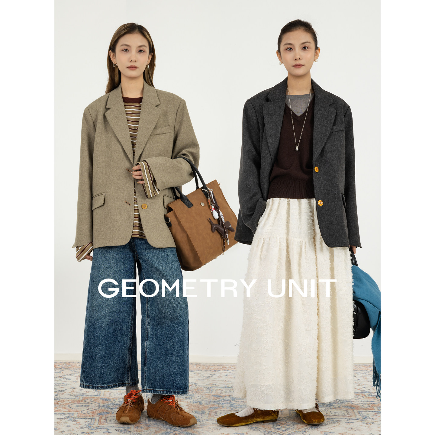 几何单元高级感复古百搭西装韩系春季新款宽松廓形时尚通勤外套