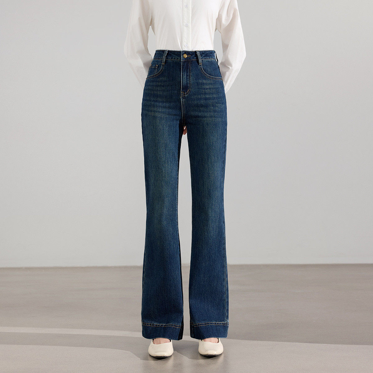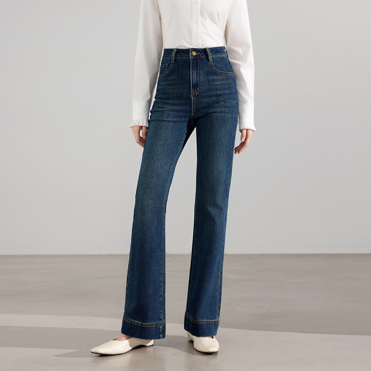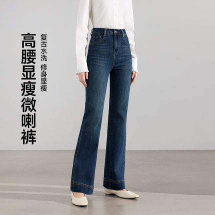 茵曼2026春季新款美式复古窄版牛仔裤女士直筒微喇叭九分裤小个子