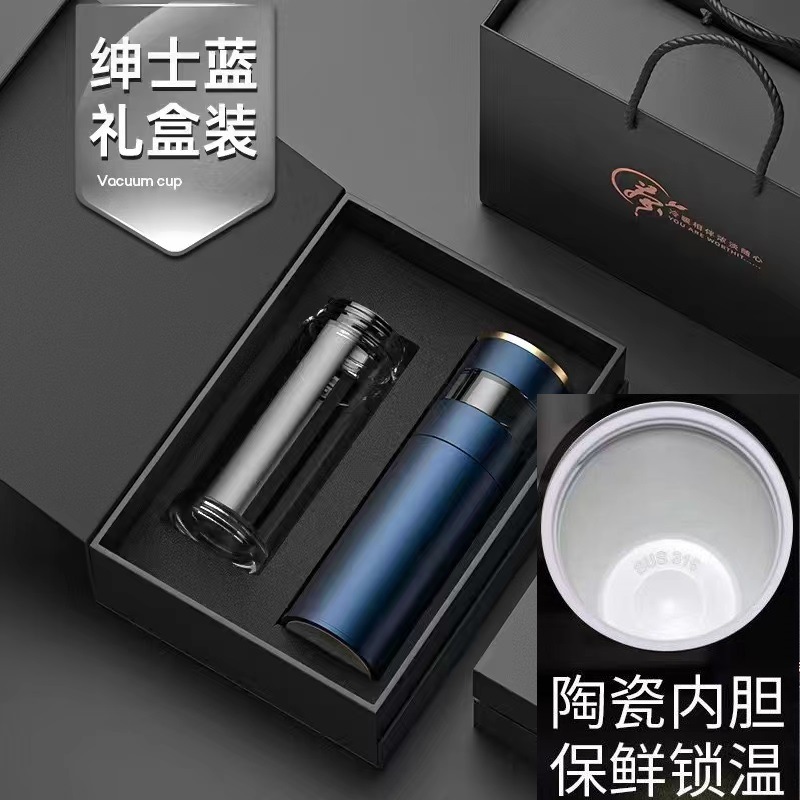 玻璃杯双层茶水分离智能防爆摔高档商务车载刻字礼盒礼品定制杯子