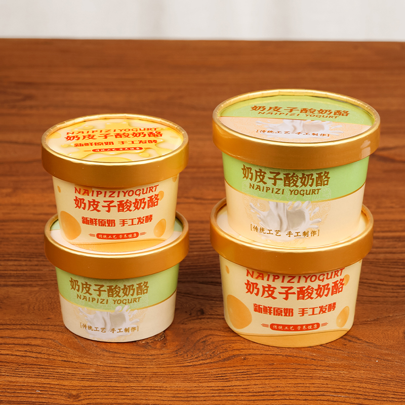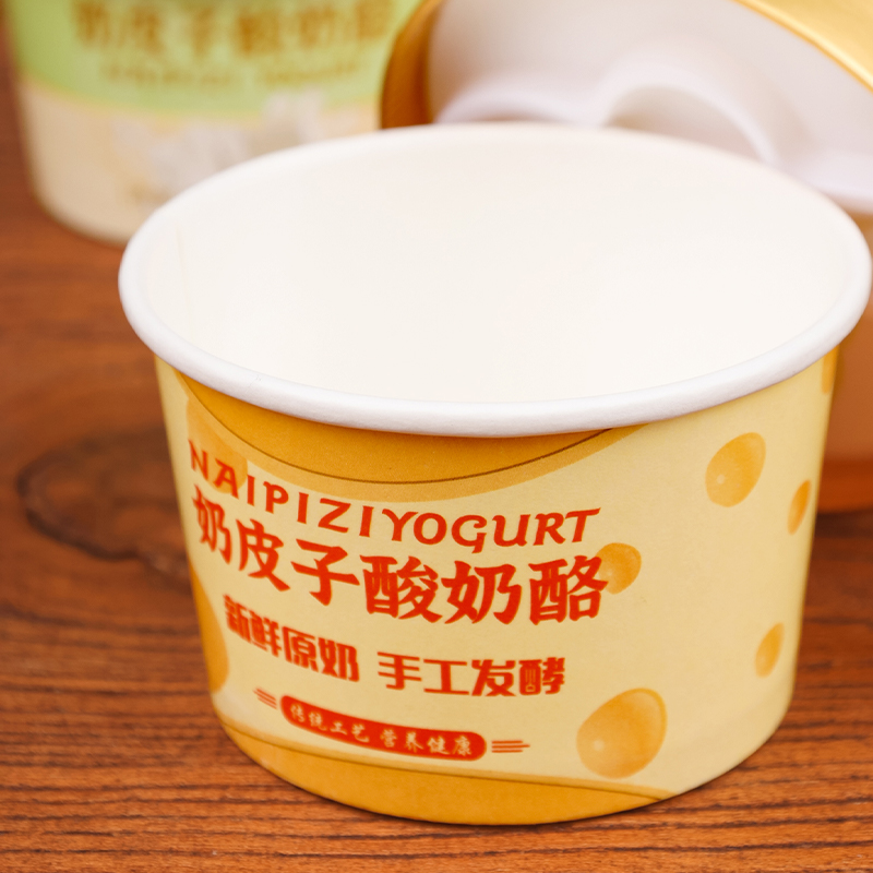 新款奶皮子酸奶包装盒一次性加厚纸碗食品级纸盒带盖含勺老酸奶杯