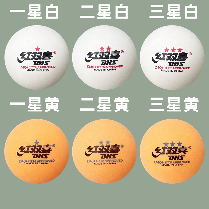 红双喜乒乓球一星二星三星赛顶比赛训练用球D40+黄球白球有缝球