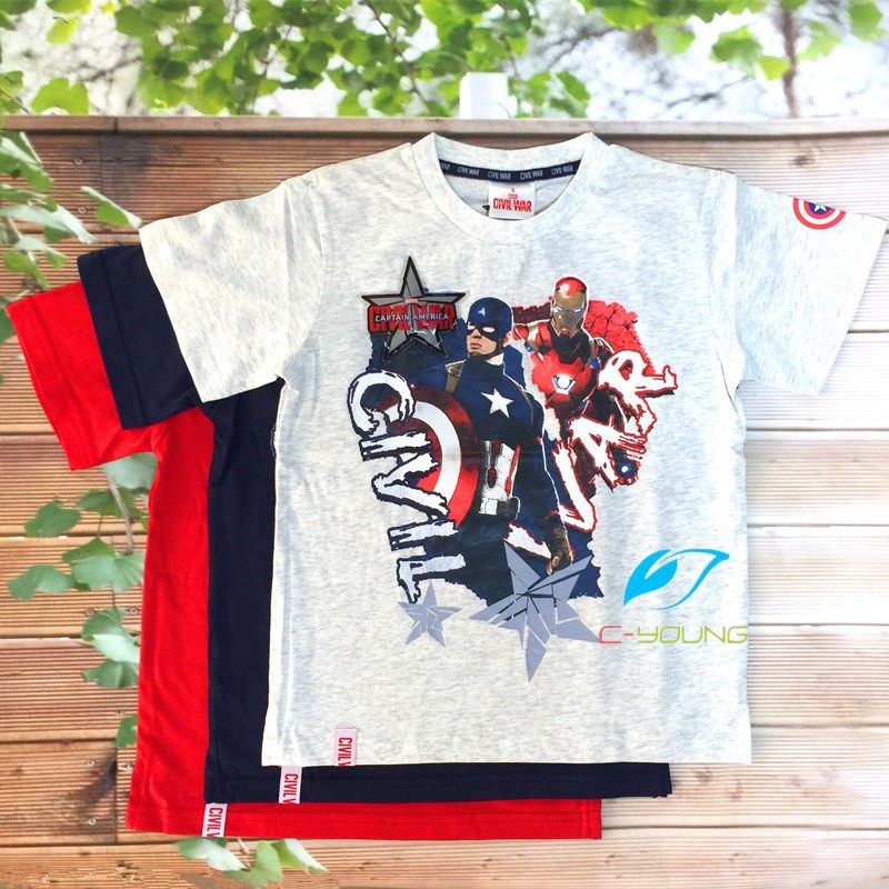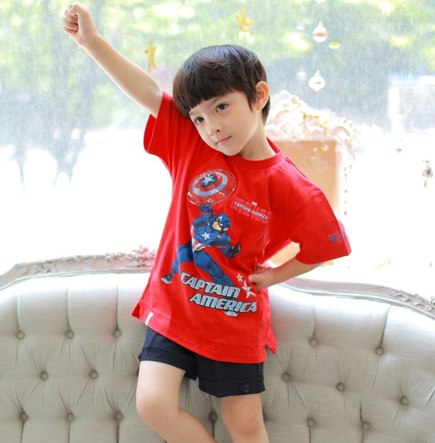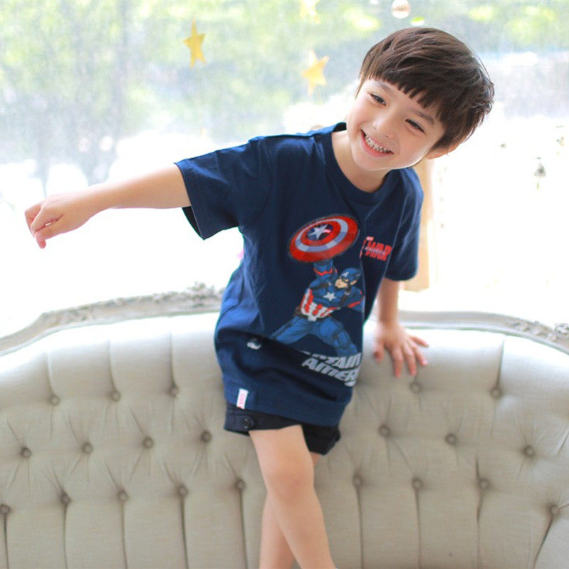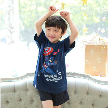 儿童会亮T恤美国队长钢铁侠男童闪灯T恤 复仇者联盟圆领全棉T恤