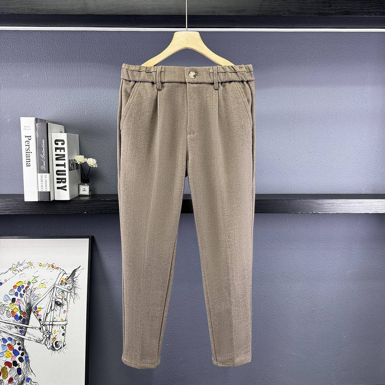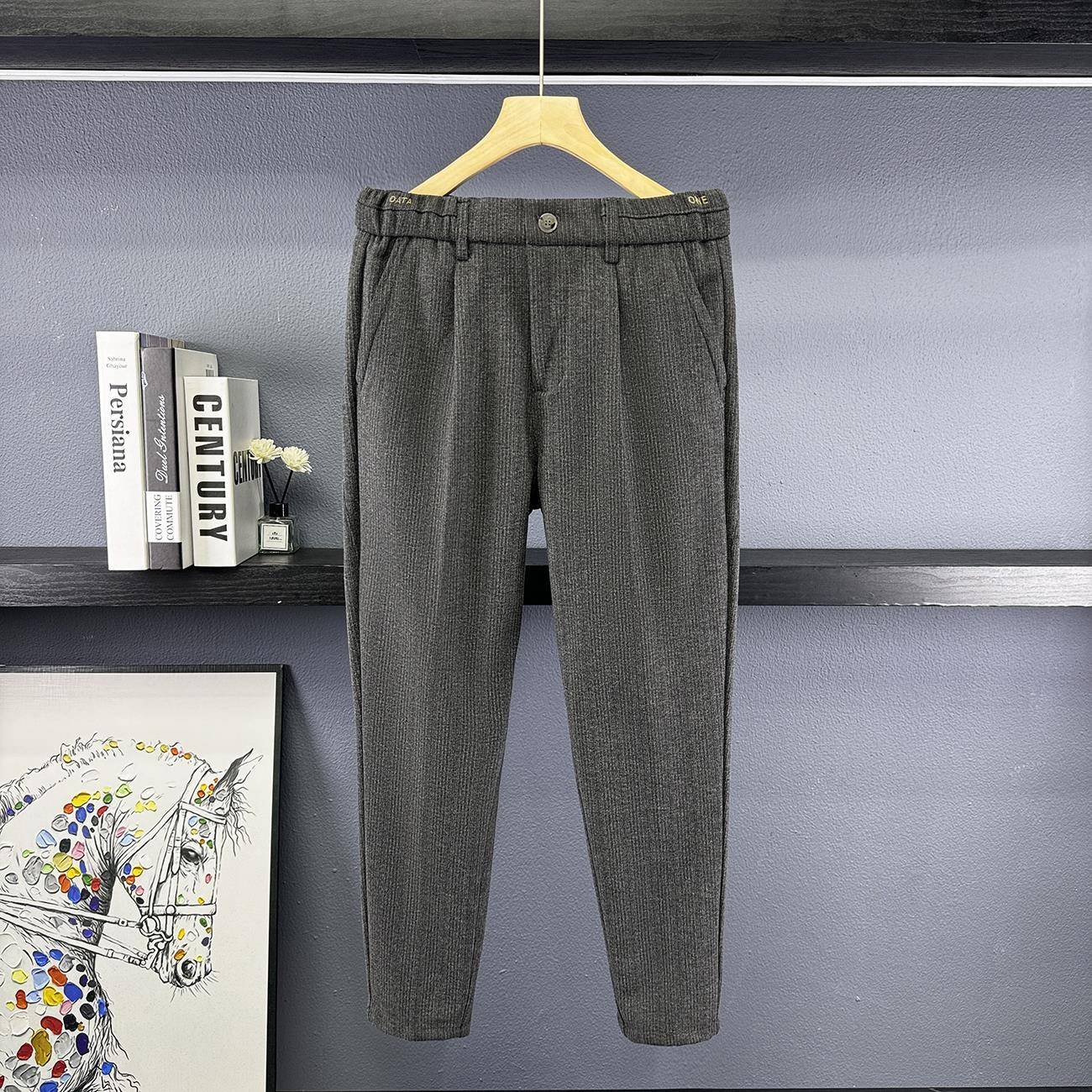 新款毛呢西装裤子男款秋冬2025加厚男裤修身小脚条纹休闲男0929z