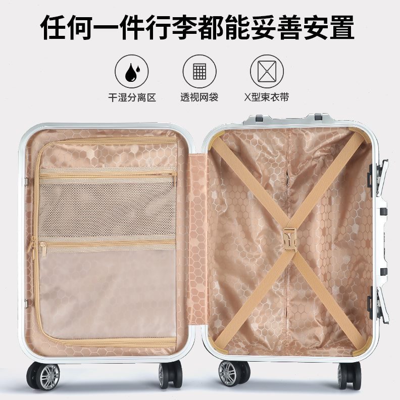 密码箱大容量静音万向轮24寸行李箱红色拉杆箱女26铝框皮箱新款子